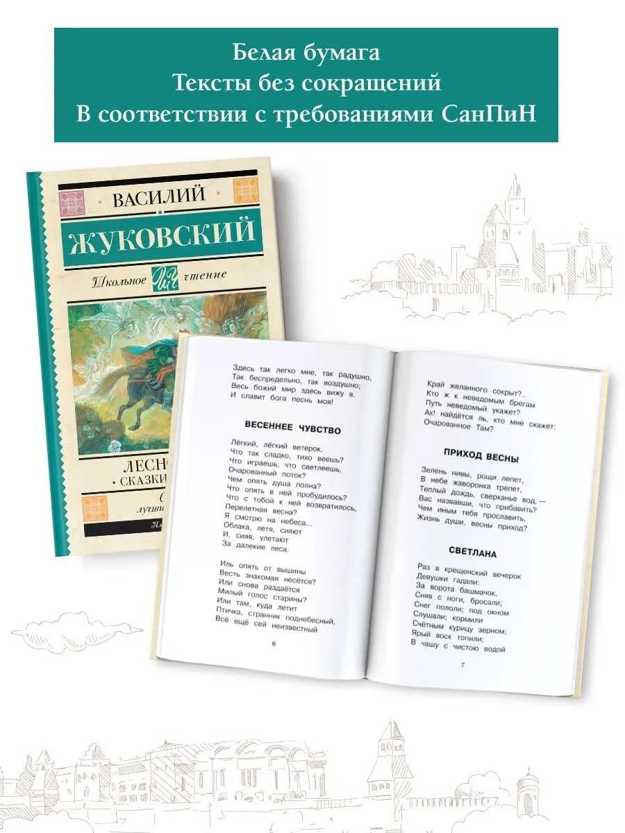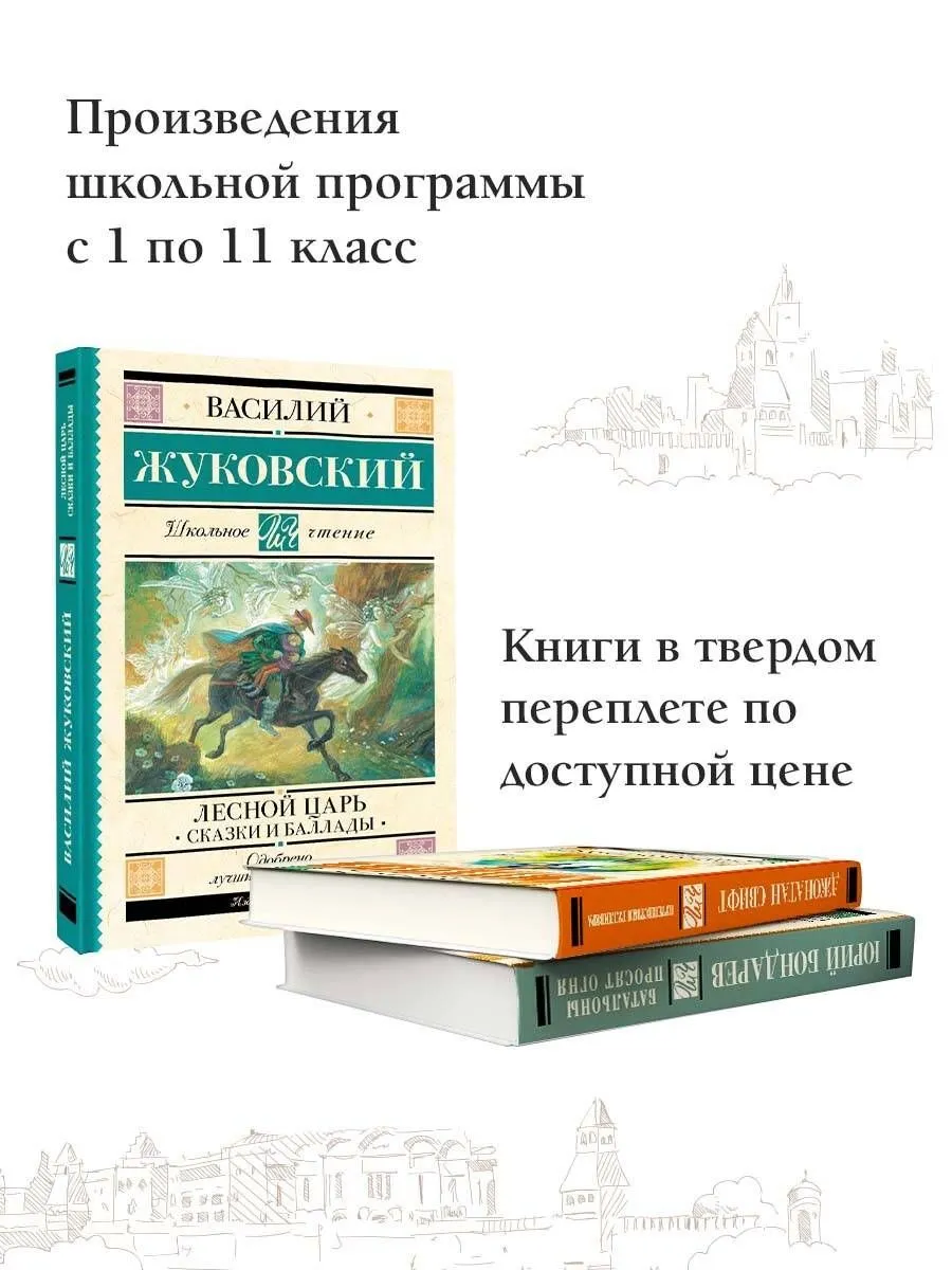 Василий Андреевич Жуковский (1783–1852) – русский поэт, основоположник романтизма в отечественной поэзии, автор элегий, романсов, баллад и эпических произведений. Стихотворение "Лесной царь" – перевод баллады И.В. Гёте.Наиболее известны русские переводы В. Жуковского и А. Фета. В.А. Жуковский перевел поэму в 1818 году. Произведение основано на древней легенде об умирающем мальчике, которого призывает в свое царство Лесной царь. В центре сюжета баллады диалог отца с сыном, скачущих на коне через лес вечерней порой. Мальчику кажется, что его манит к себе лесной царь:"Дитя, я пленился твоей красотой:Неволей иль волей, а будешь ты мой".Баллада вдохновила многих музыкантов. Наиболее известна композиция Франца Шуберта 1815 года.В книгу также вошли стихотворения и баллады Василия Андреевича Жуковского, изучение которых предусмотрено школьной программой: "Светлана", "Спящая царевна", "Загадка" и другие.