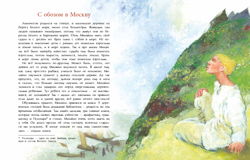 Триста лет назад в России родился человек, имя которого знают все, — Михаил Васильевич Ломоносов. В его честь названы улицы и проспекты, школы и университеты. Есть даже кратер Ломоносова на Луне… Как сын поморского рыбака стал великим учёным и двинул вперёд не только науку, промышленность, но и поэзию?