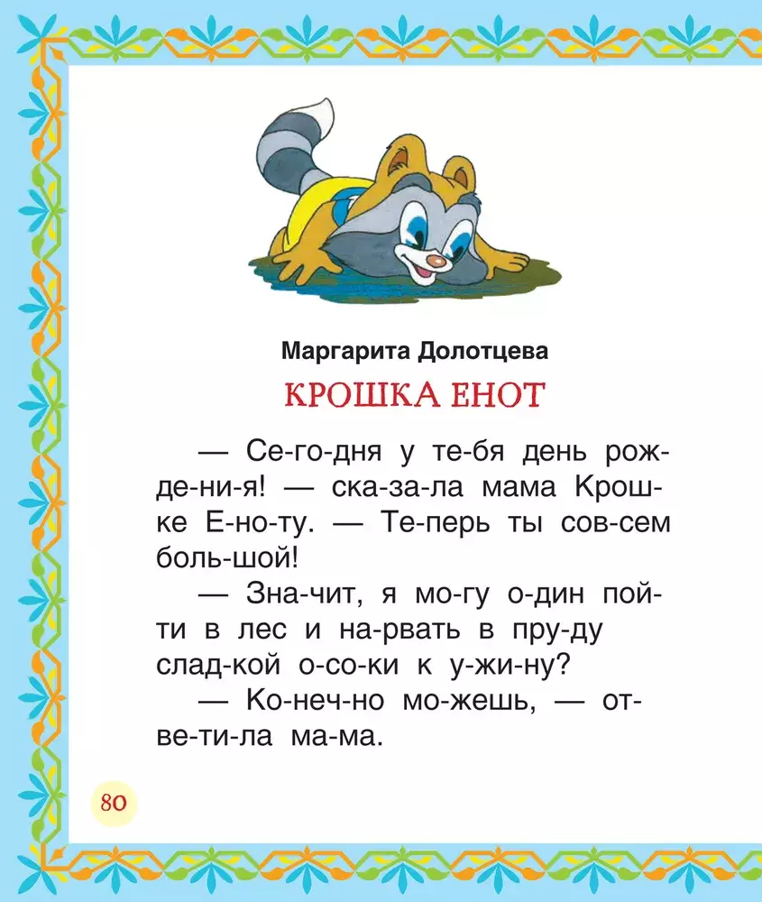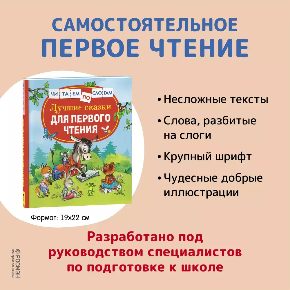 Сборник лучших сказок для первого чтения: ""Паровозик из Ромашково"" Г. Цыферова, ""Крошка Енот"" М. Долотцевой, короткие рассказы Л. Толстого и многое другое. Серия «Читаем по слогам» разработана специально для малышей, которые только учатся читать. Яркие иллюстрации, крупный шрифт, несложные тексты, разбитые на слоги, сделают первое самостоятельное чтение легким и увлекательным.