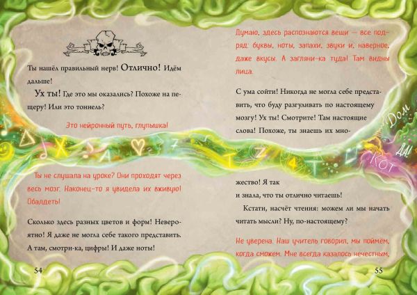 Секрет успеха серии в том, что книга ведёт живой, юмористический диалог с читателем, рассказывает ему страшные истории и приглашает в авантюрное приключение. Чтобы пройти всю книгу до конца (принимая решения на сюжетных развилках и переходя по разным страницам не по порядку), нужно разгадать немало загадок и головоломок, которые развивают внимание и мышление. В этот раз злюка решила проверить, сможет ли она с помощью заклинания проникать в мозг других людей и читать их мысли... Чем закончится этот эксперимент?