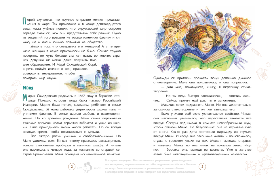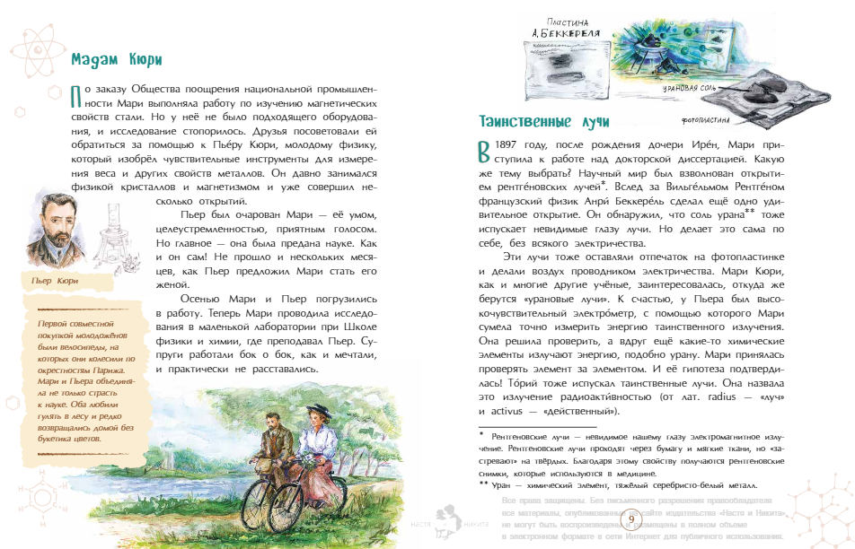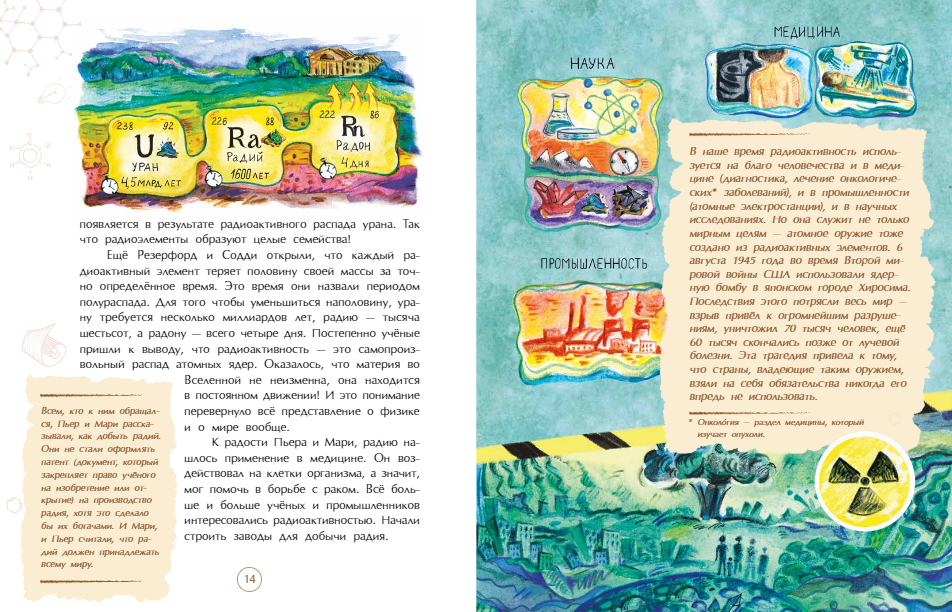Открытие радиоактивности изменило мир физики и химии. Она используется в медицине, в археологии, промышленности и сельском хозяйстве. Благодаря радиоактивному распаду атомные электростанции вырабатывают электричество. Эта книга расскажет и об опасностях, которые несёт с собой радиация. Но главное — об авторе уникального открытия, Мари Кюри, которая не только покорила мир науки, но и открыла туда дорогу другим женщинам.