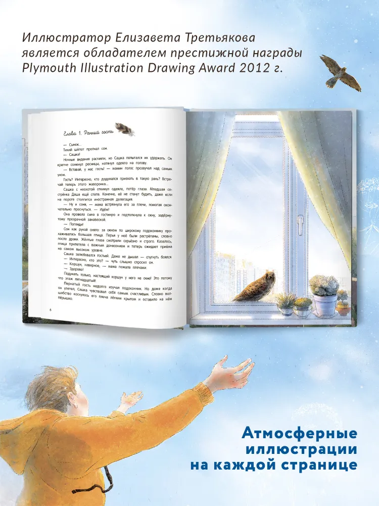 Семье Ветровых не пришлось даже выходить из дома, чтобы познакомиться с дикими птицами. Пара соколов поселилась прямо у них на подоконнике и вывела в цветочном горшке четверых птенцов. Люди и птицы не только пережили разные приключения, но и помогли друг другу.Книга о птицах, книга о животных, нежная история, насыщенная позитивом, теплом и светом! Приключенческая история. Книга о семье напоена уютом и любовью ко всему живому. Добрая история, стильное оформление, твердый переплет и плотная, приятная на ощупь бумага. Атмосферные и добрые иллюстрации. Книга для детей найдет отклик у читателей школьного возраста. Прекрасный образец современной детской прозы.