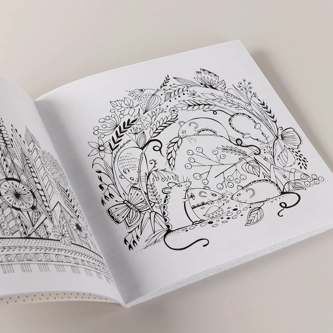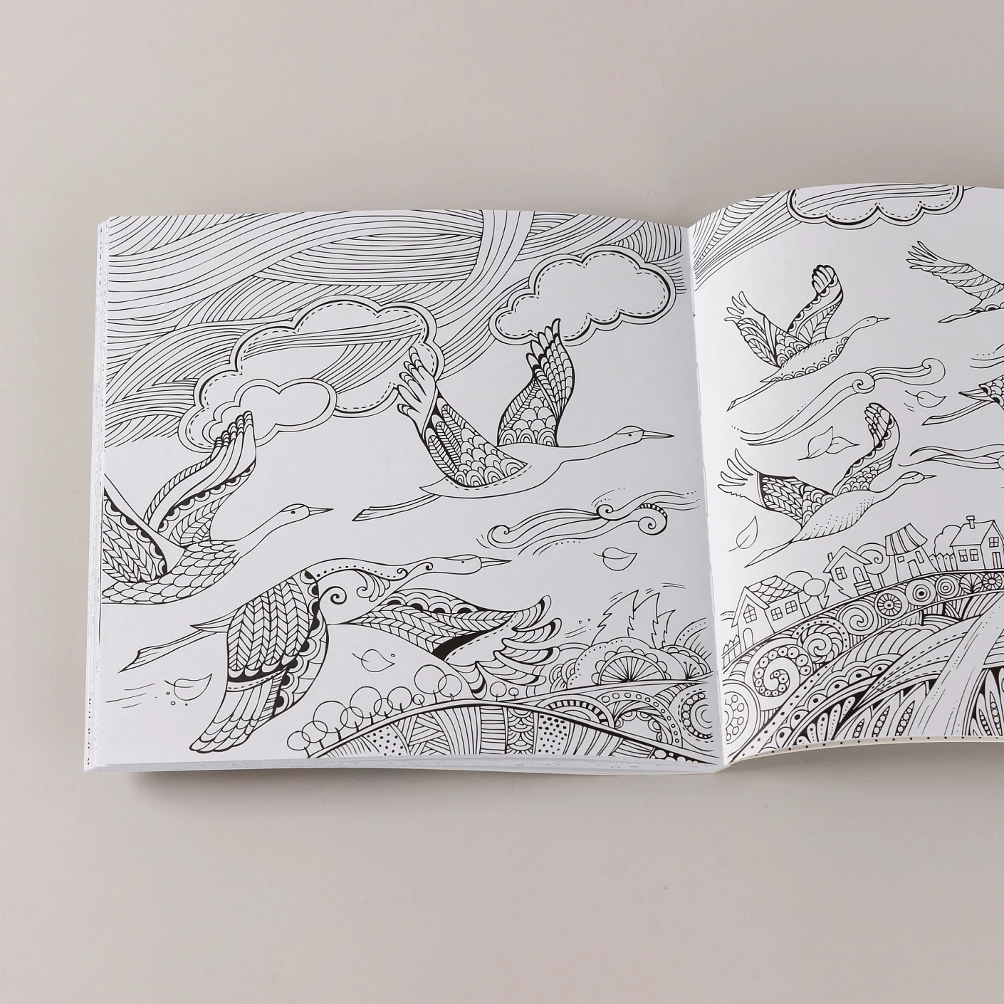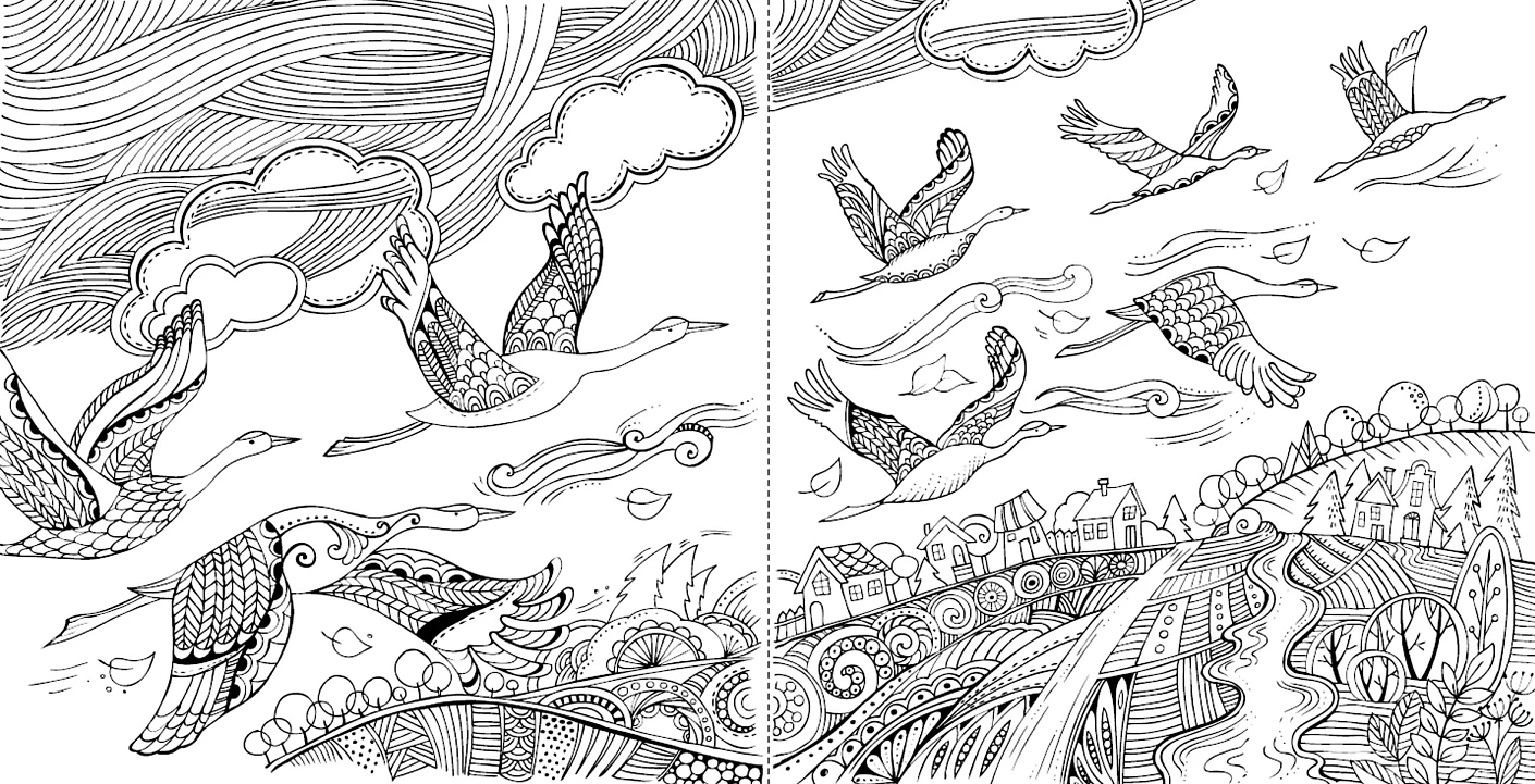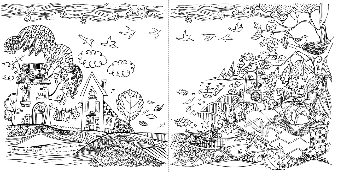 Приглашаем вас на осеннюю прогулку, ведь в это ветреное время года столько всего интересного: из земли прорастают ароматные грибы, резиновые сапоги шелестят в листьях, а воздушные змеи танцуют на ветру над сказочными пейзажами. В этой тщательно проработанной раскраске даже капли дождя приносят радость, собираясь в сверкающие лужицы. Позвольте себе очароваться осенью!