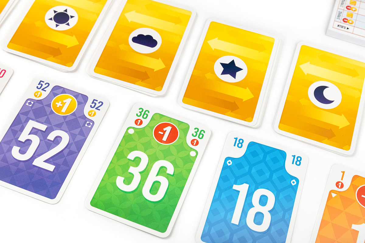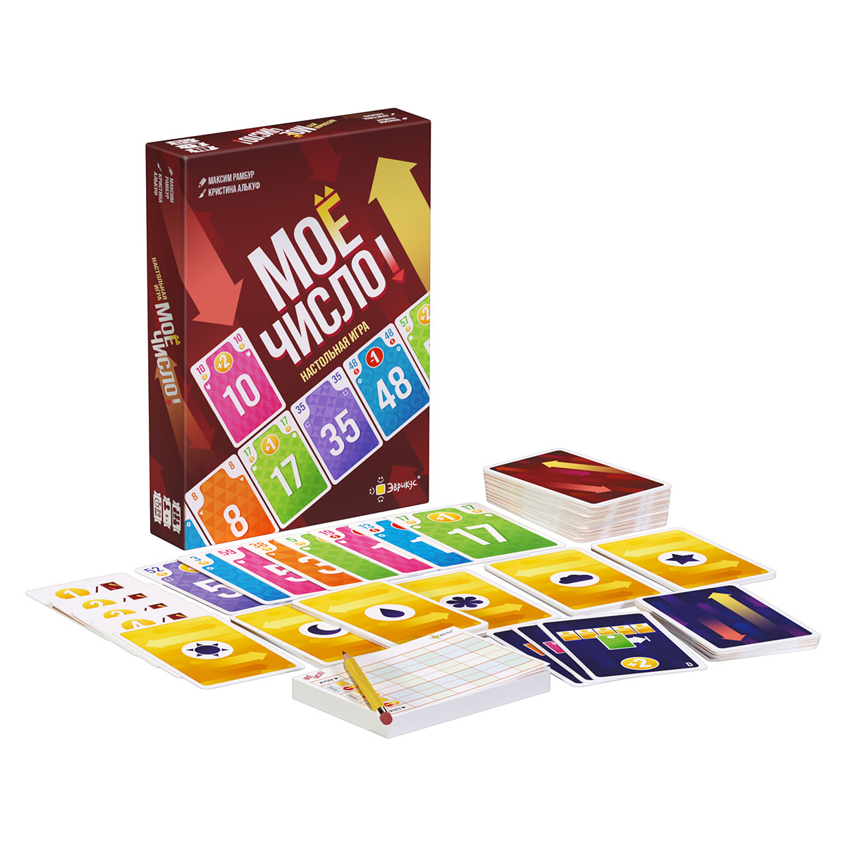 Настольная игра «Моё число!» порадует приятным дизайном карт и их качеством. В комплекте вы найдёте блокнот для подсчёта победных очков и карандаш (только в российском издании!).