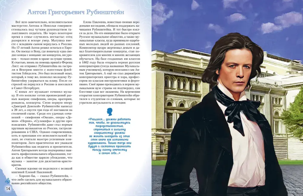 Издание предназначено для среднего школьного возраста, однако будет интересно и взрослым, а также станет неповторимым подарком по любому поводу для всех, кто любит Россию и гордится ею. Читайте всей семьёй и узнавайте всё самое интересное о великих людях нашей страны!