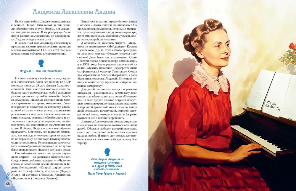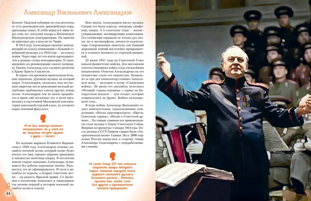 Эта книга патриотической серии «Великие люди великой страны» рассказывает о двадцати наших знаменитых соотечественниках — музыкантах, композиторах, музыковедах, певцах, чьи имена навсегда останутся в истории России. Кого называют «золотым голосом России»? При каких обстоятельствах была написана музыка к гимну нашей страны? Чьими стараниями были основаны первые русские консерватории?