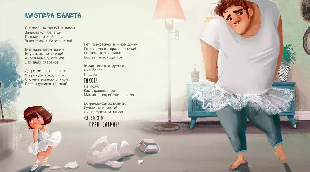 На что только не отважишься заодно с папой! Можно добыть морской клад или бесстрашно скатиться с ледяной горы, соорудить из диванных подушек индейский вигвам и даже освоить парочку балетных па! Ведь папа – настоящий волшебник, который умеет всё на свете, а главное, знает, как сделать нас с мамой самыми счастливыми! О том, как хорошо с папой, рассказывают веселые стихи Ксении Валаханович и озорные рисунки Елены Баренбаум.