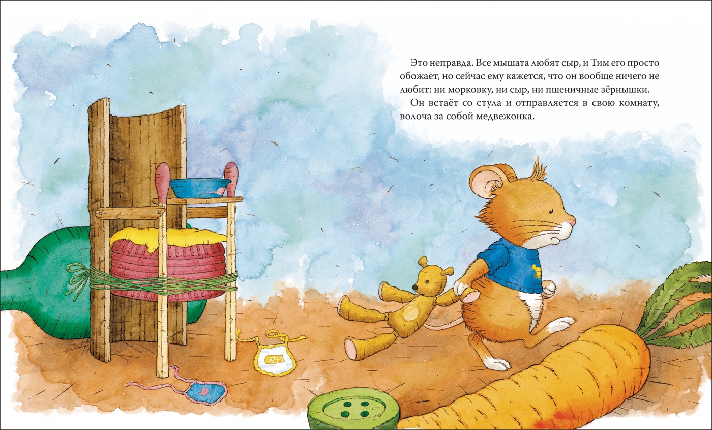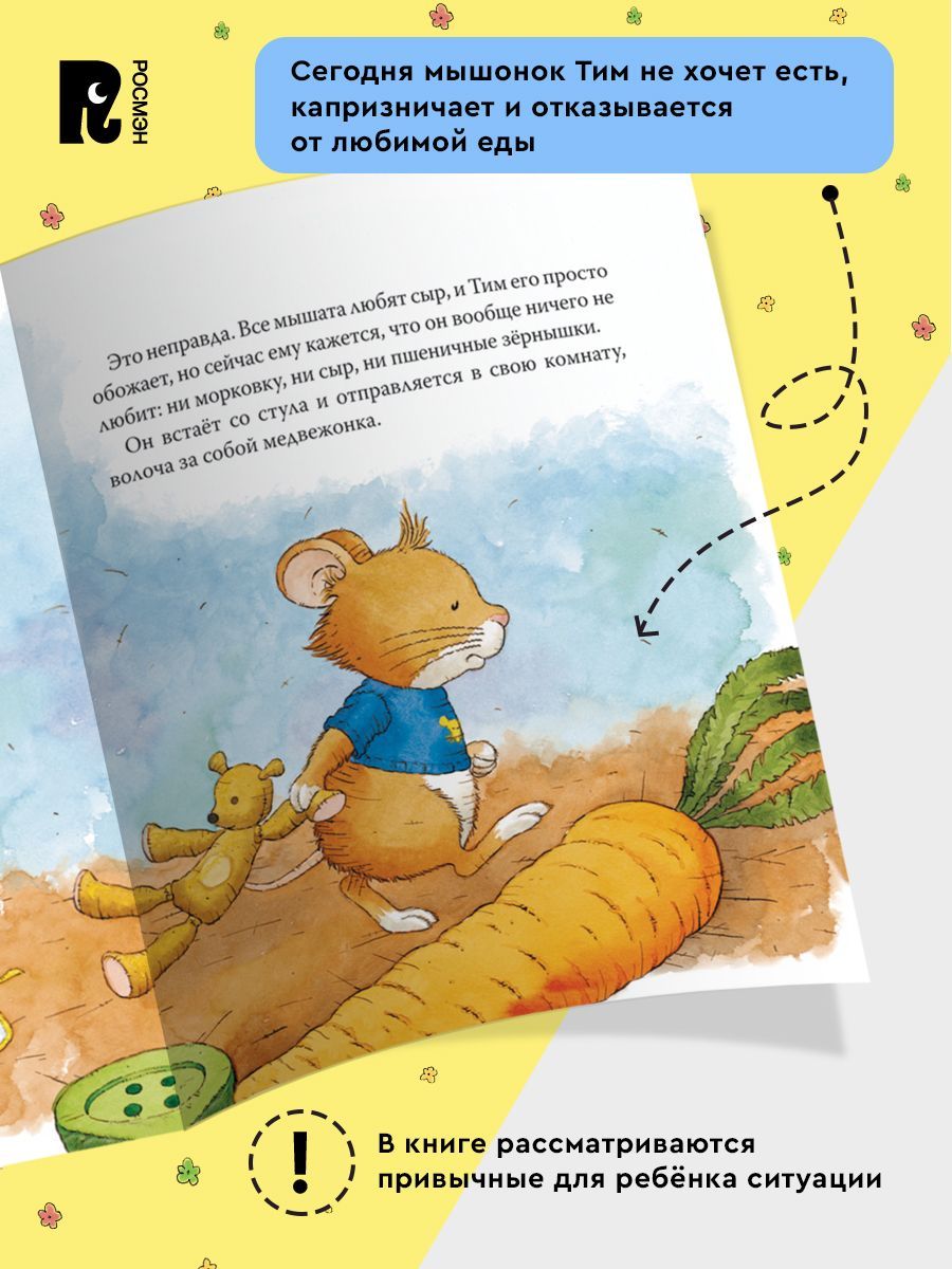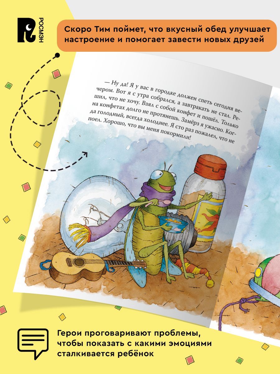 Серия книг про смешного и обаятельного мышонка Тима поможет малышам понимать, признавать и называть свои чувства, научиться общаться со сверстниками и справляться с трудными ситуациями.Сегодня мышонок Тим не хочет есть, отказывается даже от своего любимого морковного супа! «Зачем вообще нужно есть?» ворчит мышонок. И тут приходит замерзший кузнечик. Он поможет мышонку съесть все до крошки.