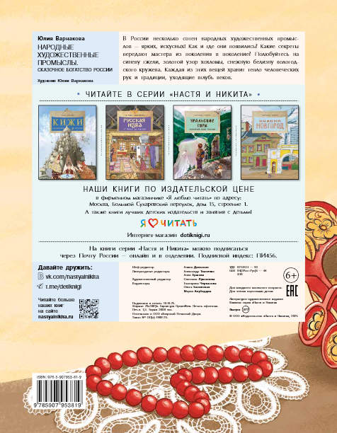 В России несколько сотен народных художественных промыслов — ярких, искусных! Как и где они появились? Какие секреты передают мастера из поколения в поколение? Полюбуйтесь на синеву гжели, золотой узор хохломы, снежную белизну вологодского кружева. Каждая из этих вещей хранит тепло человеческих рук и традиции, уходящие вглубь веков.