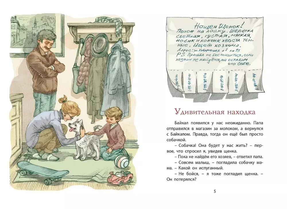 Как-то раз папа отправился за молоком, а вернулся… с очаровательным щенком. Кто же его потерял? Вдруг его хозяева не найдутся? Не беспокойтесь, без дома он не останется! Щенка ждут новый дом и новое имя, первая прогулка и первая лужа, а ещё весёлые приключения в городе и на даче. Но самое главное – новая дружная семья, частью которой он станет.