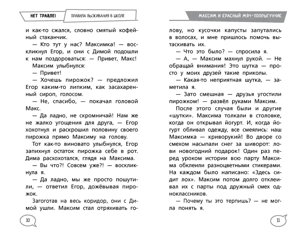 Школьные годы — это время ярких открытий и преданных друзей. Но этот период невозможен и без конфликтов. Что делать, чтобы ссоры не переросли в травлю и как ей противостоять? Как сделать школьную жизнь безопасной и комфортной? В этих и многих других вопросах помогают разобраться тренер по безопасности Елизавета Пушкова и писатель Екатерина Земляничкина. Вместе с героями 15 вдохновляющих рассказов ребята научатся правильному поведению в ситуации травли, смогут обрести уверенность и внутреннюю опору. Иллюстрации в стиле комиксов художницы Дарьи Ситниковой помогут лучше погрузиться в чтение.