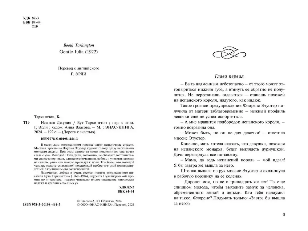 В маленьком американском городке царят нешуточные страсти. Местная красавица Джулия Этуотер кружит голову сразу нескольким молодым людям. При этом одного из своих поклонников она почти свела с ума. Молодой Нобл Дилл, возможно, не обладает достоинствами своих соперников, однако отчаянная любовь и упрямая надежда на счастье рано или поздно приведут его к цели. Тем более что молодой человек пользуется активной поддержкой изобретательной тринадцатилетней племянницы его возлюбленной. Лирическая, добрая и очень веселая повесть американского писателя Бута Таркингтона (1869–1946), лауреата Пулитцеровской премии по литературе, подарит читателю теплое ощущение юношеских надежд и крепких семейных уз.