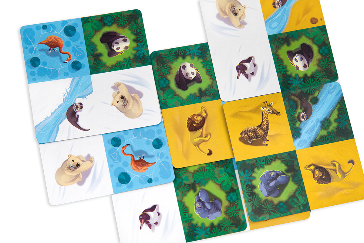 «Нималия» - красивая карточная семейная игра на логику и пространственное мышление, в которой игрокам предстоит создать заповедник, выкладывая карточки, и заработать как можно больше победных очков.