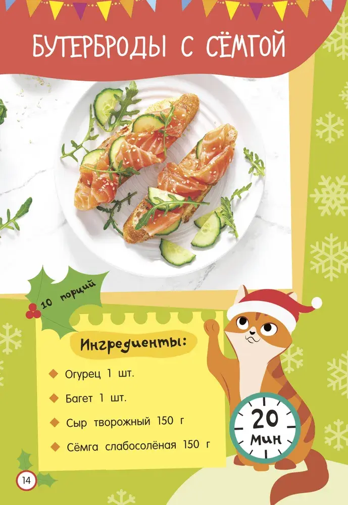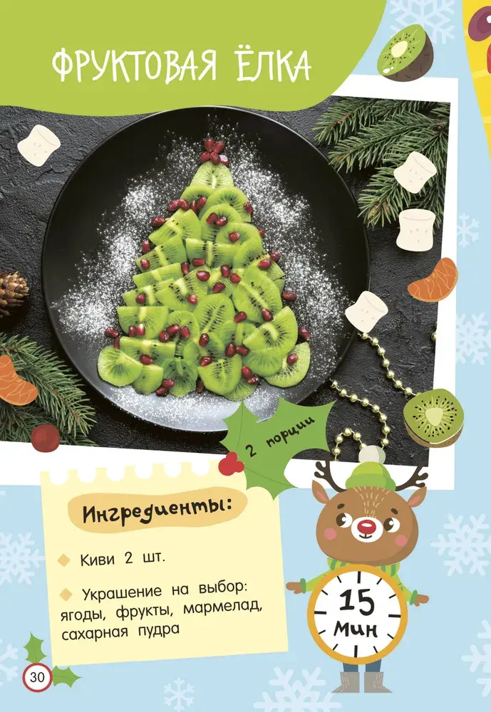 Из книги "Новогодние рецепты: готовлю сам без мамы" ребёнок узнает, как самостоятельно приготовить традиционный салат "Оливье", канапе-ёлочку из огурца, мандаринового снеговика, пингвинчика из маслин и моцареллы, а также много-много других новогодних блюд. Есть пошаговые инструкции-рисунки, доступные объяснения и красочные фотографии готовых кулинарных шедевров. Книга удобна в использовании — благодаря спирали страницы легко перекидываются из стороны в сторону, открываясь на 360 градусов. Книга подойдёт в подарок и девочке, и мальчику младшего школьного возраста.