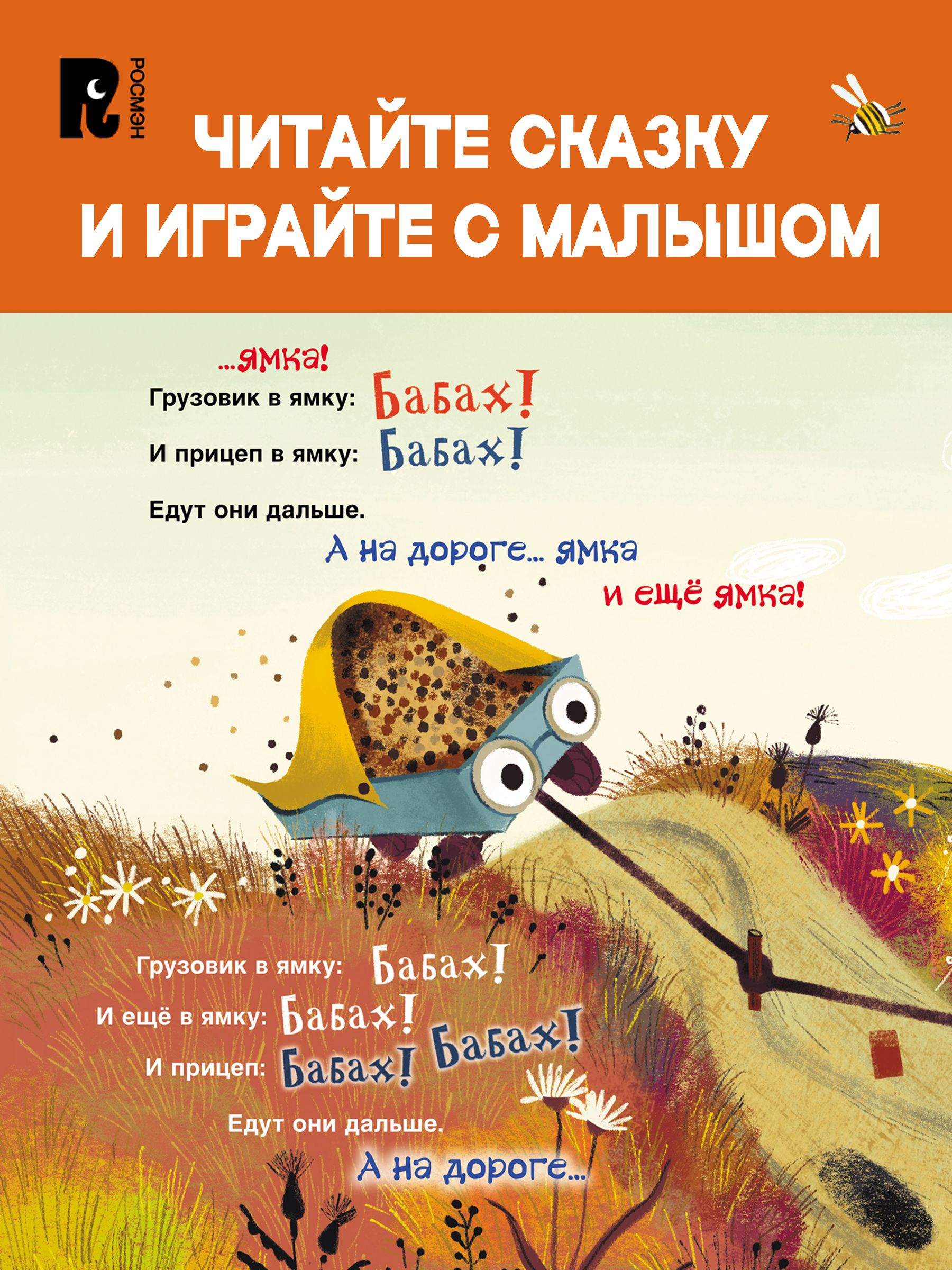 Анастасия Орлова – современный детский писатель, лауреат литературных премий им. С. Я. Маршака, А. Дельвига, К. Чуковского, победитель всероссийского литературного конкурса «Новая детская книга», Настя Орлова пишет детские книги, потому что они добавляют радости и счастья в её жизнь. Радости и счастья книги Анастасии Орловой добавляют и в жизнь ее читателей, от мала до велика. «Это грузовик. А это прицеп» - история для самых маленьких о том, как грузовик и его друг непоседливый прицеп, трудятся с утра до ночи, развозя разные грузы. В пути их ждут ямки и ямищи, горы и пригорки, и лужи, и дожди… Этак у кого хочешь колесо разболится… Хорошо, что друг всегда придёт на помощь в трудную минуту! Книга адресована детям до 3-х лет и детям, делающим первые шаги в освоении навыка самостоятельного чтения. Книгу отличает сквадраченный "малышовый" формат, плотная бумага в блоке.
