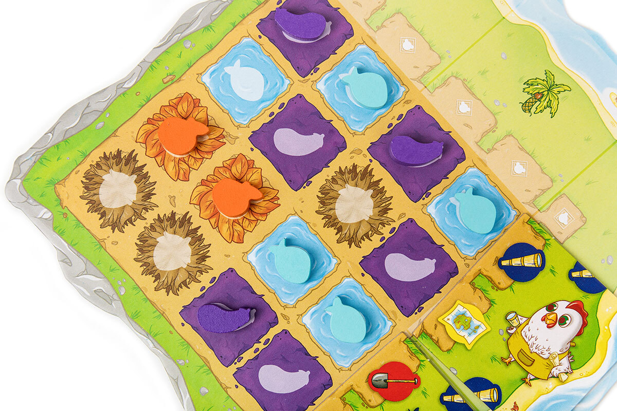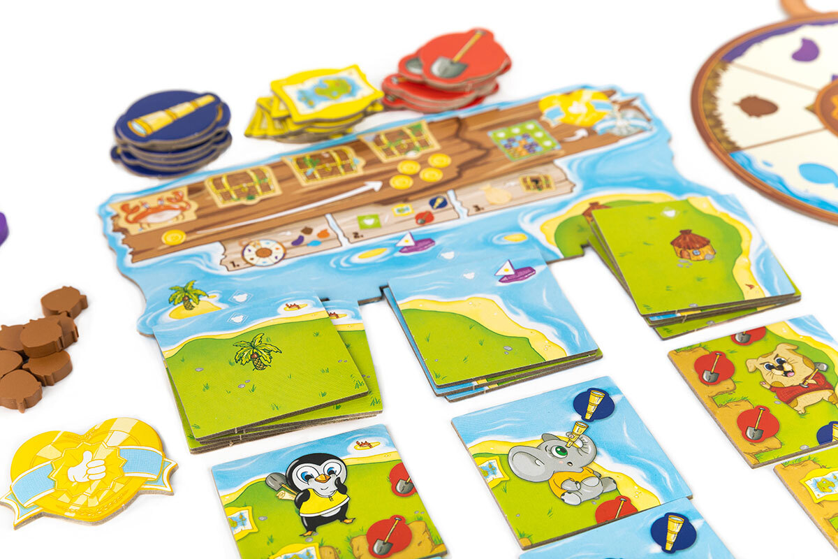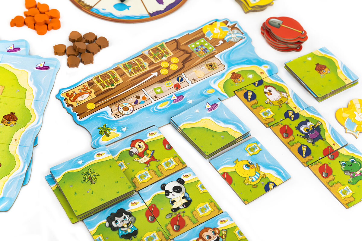 - Старататься подружиться с разными животными, приглашая их на свой остров и получая снаряжение. Для этого вы будете выбирать жетоны персонажей и, соединяя их стороны, получать жетоны снаряжения (подзорную труба, карту или лопату).