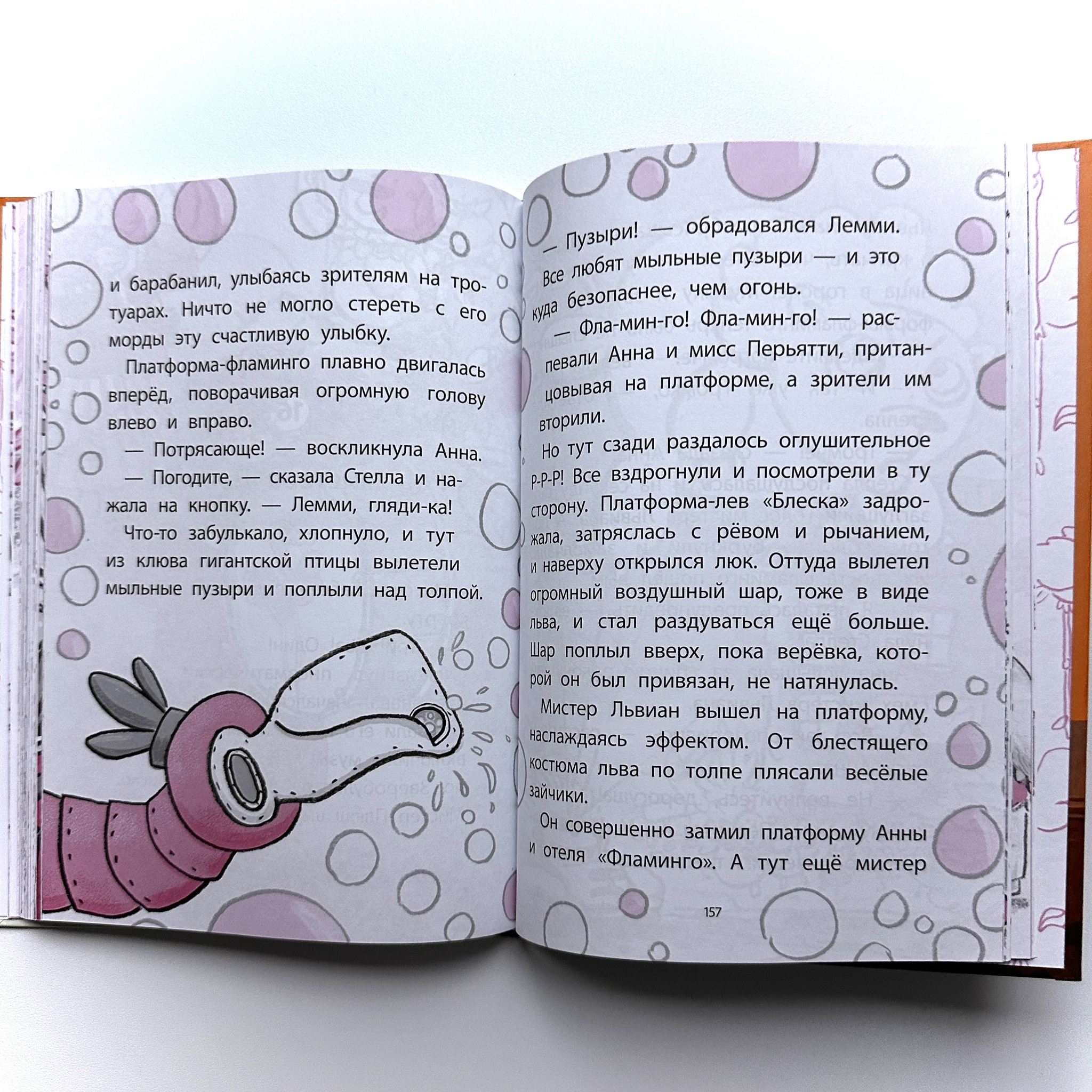 Помните Анну Дюпон и её звериный отель "Фламинго"? Сначала девочке-владелице пришлось отдраить его от подвала до крыши, а потом ещё и пережить приезд пингвинов! Теперь уже весь Зверобульвар преобразится: улицу украсят сотни весёлых животных в необычных костюмах. Ежегодный карнавал возглавит именно отель "Фламинго". Усилиями юной управляющей, её верных помощников Плюша, Лемми, мадам Ле Хрю и других зверей гостиница вновь процветает - она заслужила такую честь! Вот только радует это не всех. Год назад во главе карнавала ехали мистер Львиан со свитой из отеля "Блеск". Такого удара от выскочек-конкурентов гордый Львиан ни за что не простит…