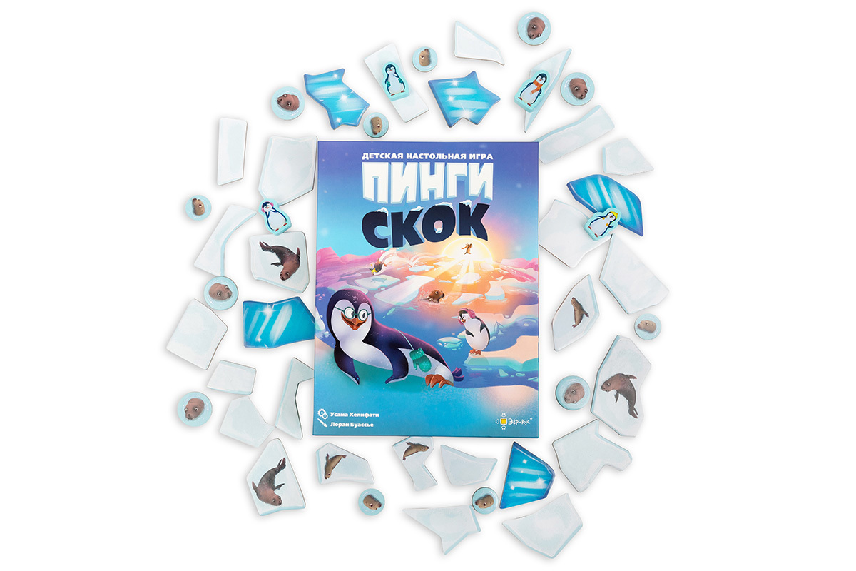 Это кооперативная детская игра с объёмным полем, в которой маленькие любители настолок будут сообща спасать милых пингвинчиков.
