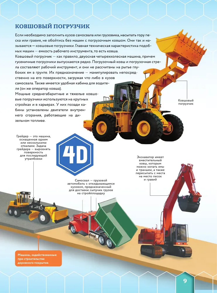 Нашу жизнь сегодня невозможно представить без огромного количества всевозможных машин и механизмов, ставших незаменимыми помощниками человека буквально во всех сферах его деятельности. Они способны выполнять свою работу практически в любом месте: на невообразимой высоте и в недосягаемых глубинах, в вечной мерзлоте и в бушующем пламени, на склонах гор и в глубоких карьерах и даже в безвоздушном космическом пространстве. Что же это за техника и как она устроена? Ответы на все вопросы ты найдешь в этой необычной энциклопедии, целиком посвященной машинам, которые с древности и до наших времен служат человеку, постоянно видоизменяясь и совершенствуясь. А благодаря 4D-визуализации, которая, кстати, тоже является результатом стремительного развития технологий, каждую из них теперь можно в деталях рассмотреть на экране смартфона. Ты увидишь во всех подробностях, как работают самые разные полезные машины, а прослушав познавательные аудиозаписи, узнаешь много нового об их конструктивных особенностях, важных деталях и узлах. Использование дополненной реальности делает информацию о технике более понятной и доступной, а возможность взаимодействовать со многими интерактивными моделями дает шанс даже управлять ею!