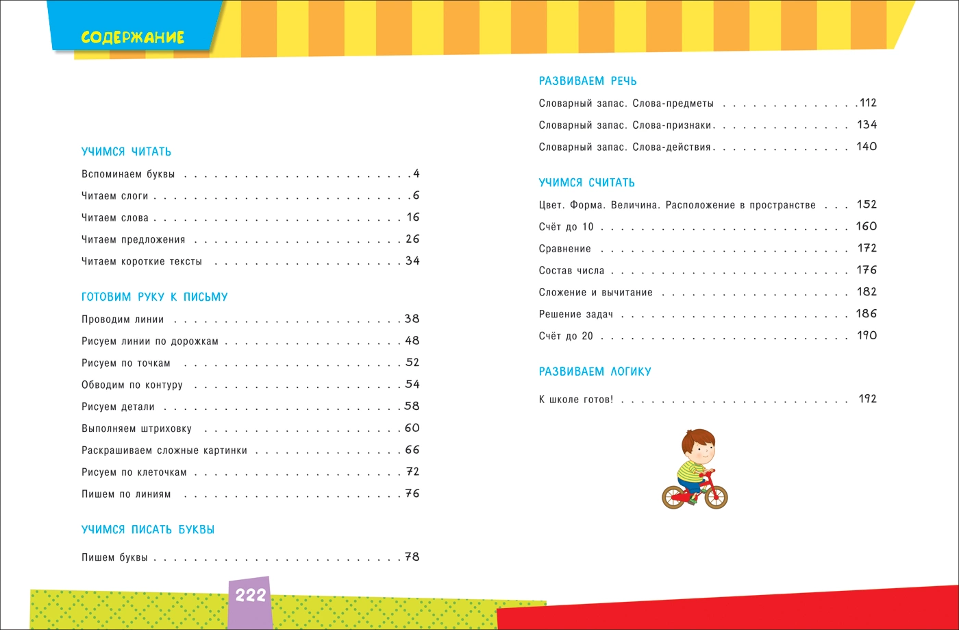 Познавательные материалы книги помогут родителям и воспитателям в подготовке ребенка к школьному обучению. Все основные направления подготовки представлены в одном издании: математика; чтение; развитие речи; письмо; окружающий мир; развитие машления, логики, внимания и памяти. Каждый раздел книги представлен заданиями по одному направлению подготовки. Все задания объединены сюжетом. Сложность заданий увеличивается по мере прохождения сюжета. Яркие современные иллюстрации в сочетании с активными заданиями помогут добиться максимального результата. Издание предназначено детям разного уровня подготовленности. Материал издания соответствует ФГОС и основным программам дошкольного образования.