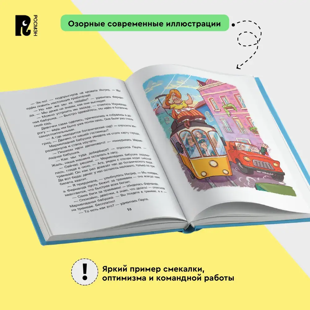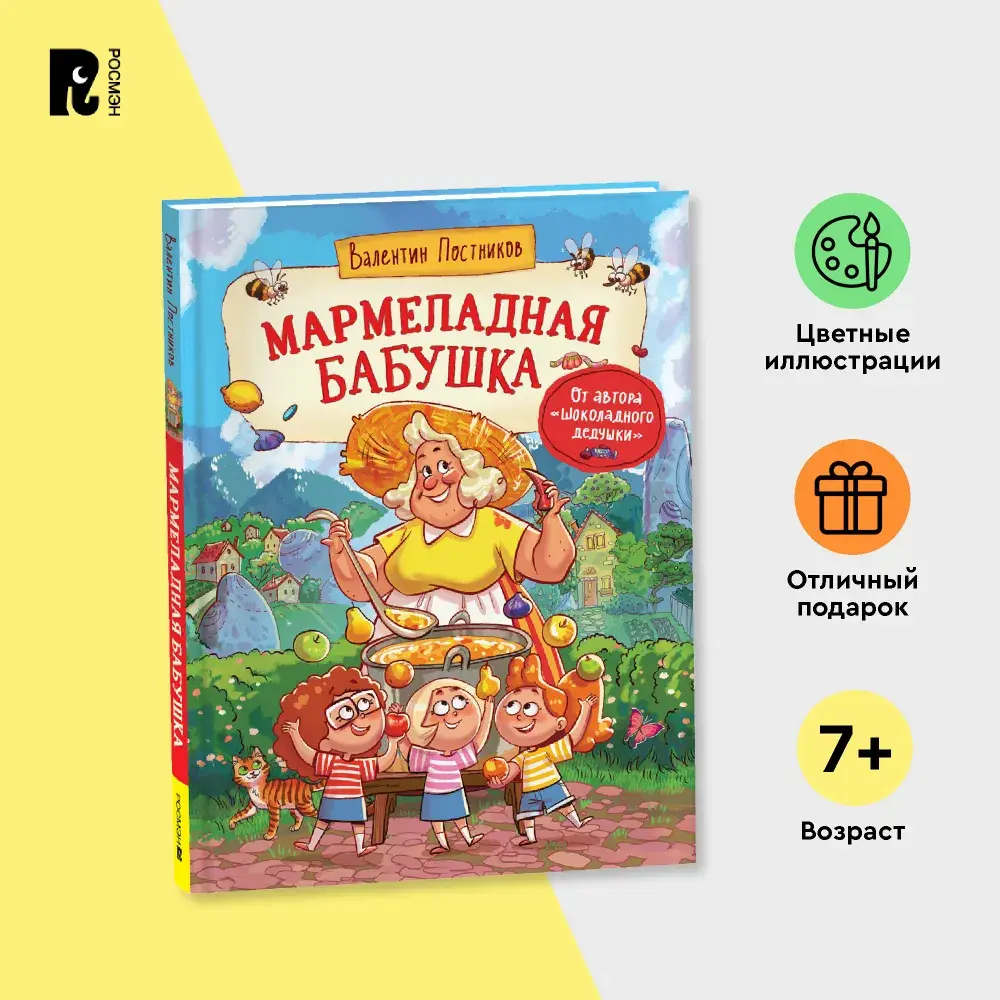 В одном маленьком южном городке живет очень необычная бабушка. Во-первых, она готовит самый вкусный мармелад на свете: за это ее и прозвали Мармеладной бабушкой. А во-вторых, есть у этой бабушки волшебный дар: стоит ей чихнуть — и она тут же переносится куда захочет. И вот од- нажды Мармеладная бабушка так сильно чихнула, что оказалась в совершенно незнакомом городе вместе с тремя любимыми внучками. Здесь-то и начались их невероятные приключения.