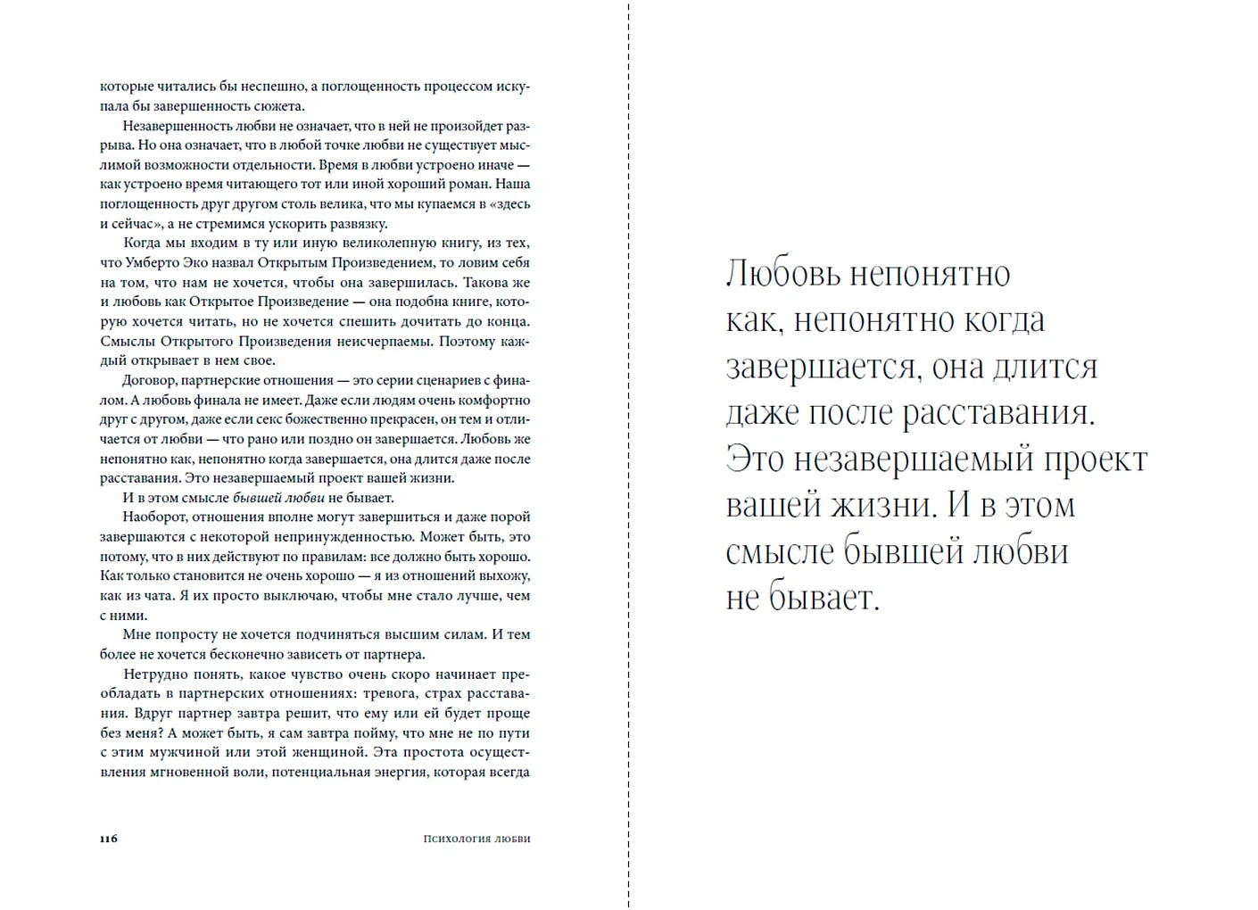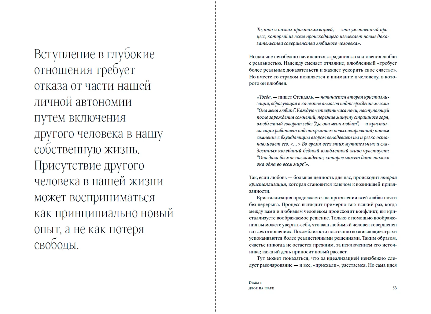 Зачем в жизни человека и человечества рождается чудо — чудо любви? Возможно ли двоим превратиться в одно целое и при этом сохранить уникальность своего Я? Не является ли любовь той могучей силой, благодаря которой в каждом из нас рождается человечность и одерживаются победы над расчеловечиванием в самые трагичные времена? Перед вами книга о понимании человеческой жизни в контексте любви и о понимании любви в контексте великого закона эволюции: закона востребованного разнообразия. Александр Асмолов, выдающийся российский психолог, заслуженный профессор, заведующий кафедрой психологии личности Московского государственного университета, научный руководитель Московского института Психоанализа и автор бестселлера «Психология достоинства: Искусство быть человеком», ведет разговор о любви как переизобретении жизни, необходимом опыте полноты переживания своего времени и вечности во времени. Автор обсуждает современные угрозы любви, страх уязвимости и боязнь неизвестного, безнадежные мечты о гарантиях. Но, поскольку исход любви как поступка заведомо непредсказуем, лишь обладая мужеством ставить и решать задачи на личностный смысл, каждый получает шанс через любовь приоткрыть то, зачем он пришел в этот мир, мир, в котором всегда есть те, ради которых стоит жить.