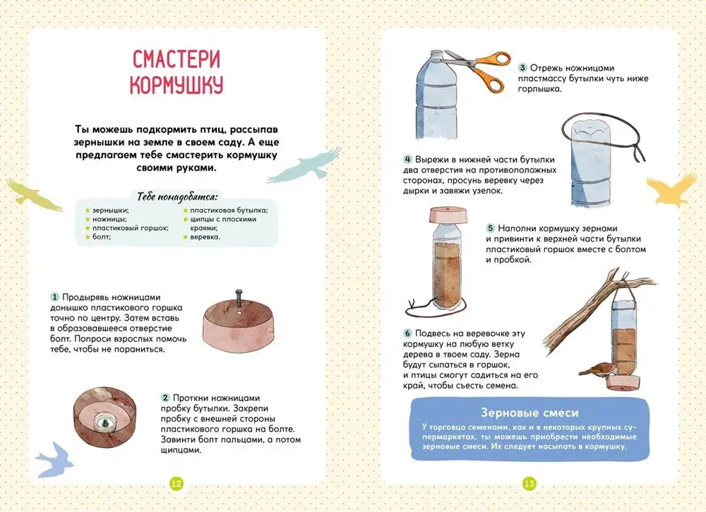 Рядом с твоим домом обитает множество птиц. Хотелось бы тебе узнать о них больше? Эта книга расскажет о разных видах птиц, которых ты можешь увидеть в городе или лесу. Ты рассмотришь крылья, лапки и клюв пернатых, прочитаешь про их питание, внешние особенности, повадки, ареал обитания. А еще ты узнаешь, что такое кольцевание, как делать скворечник и кормушку и как оказывать помощь раненой птице. Познакомься с самыми распространенными птицами на нашем континенте и стань настоящим орнитологом!