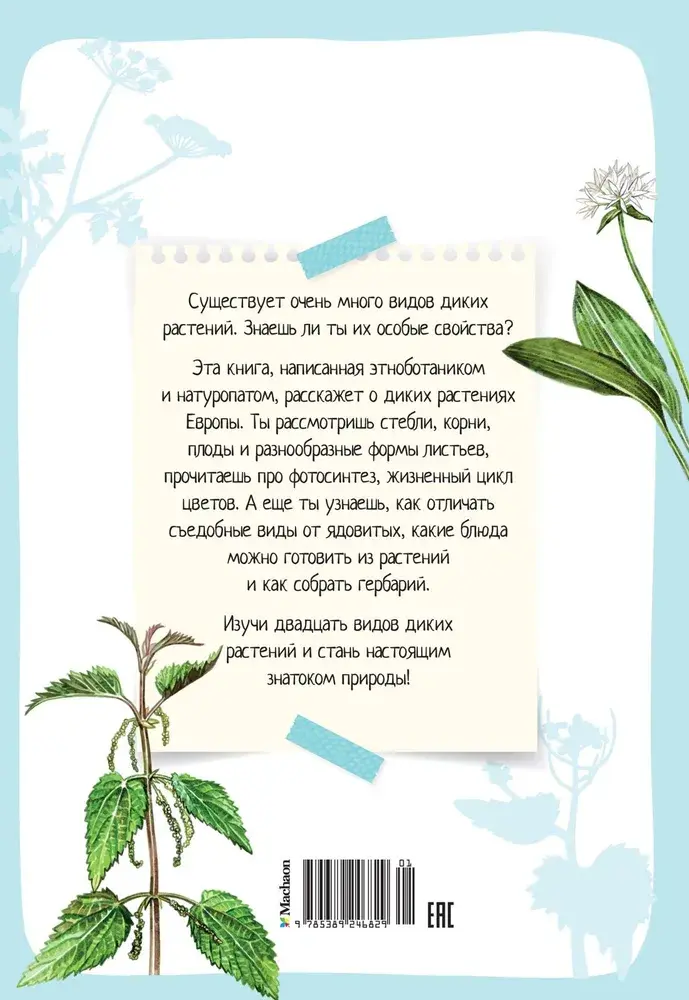 Существует очень много видов диких растений. Знаешь ли ты их особые свойства? Эта книга, написанная этноботаником и натуропатом, расскажет о диких растениях на европейском континенте. Ты рассмотришь стебли, корни, плоды и разнообразные формы листьев, прочитаешь про фотосинтез, жизненный цикл цветов. А еще ты узнаешь, как отличать съедобные виды от ядовитых, какие блюда можно готовить из растений и как собрать гербарий. Изучи двадцать видов диких растений и стань настоящим знатоком природы!