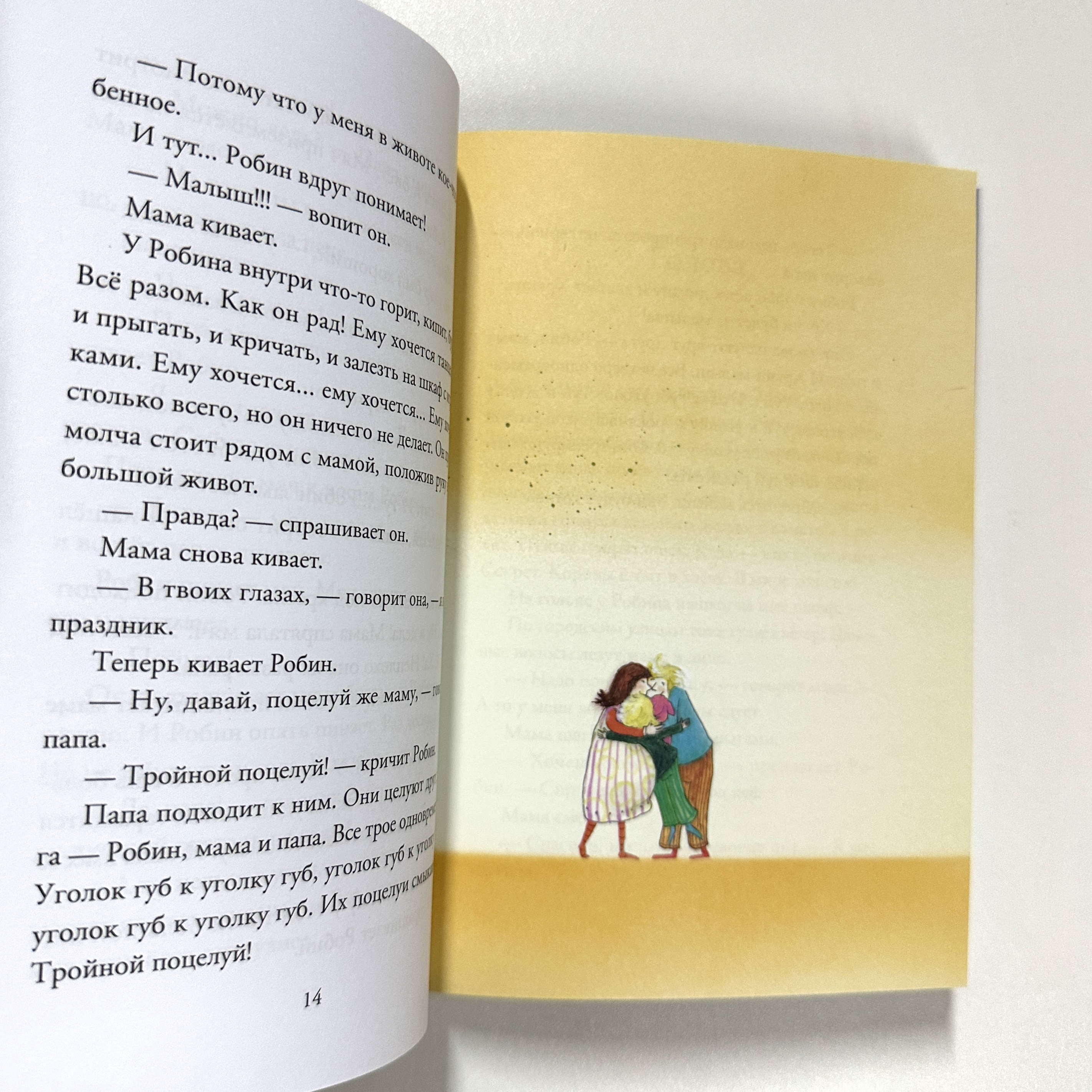 Мама Робина здорово мастерит лошадей. Папа Робина отлично играет в комнатный футбол. А Робин обожает играть в рыцарей (только это секрет). До чего же прекрасно живётся втроём! Однажды Робин замечает, что мамин живот стал очень большим. Может, она спрятала под кофтой мяч? А вот и нет: в животе — малыш! Скоро у Робина появится братик или сестрёнка. Но как же долго тянется это «скоро»... Трогательная и тёплая история о том, как вся семья ждёт и встречает малыша.