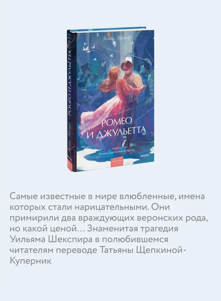 Трагедия Уильяма Шекспира «Ромео и Джульетта» написана в XVI веке, а сюжет и вовсе берет начало в античной поэме «Метаморфозы» Овидия. Но многочисленные переиздания, театральные постановки и экранизации не дают усомниться: прекрасная и печальная история любви до сих пор волнует и впечатляет читателей и зрителей.