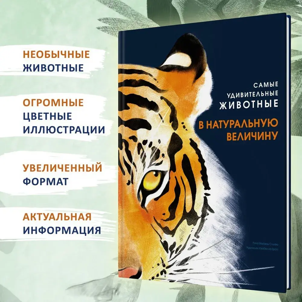 Какой длины язык у малайского медведя? Чем питается карликовая многозубка? Где обитает лягушка-голиаф? На страницах этой книги ты можешь увидеть самых удивительных и необычных животных нашей планеты: сероголовую летучую лисицу, жабу-агу, паука-скакуна, кистеухую белку и многих других. Рассмотри зубы белой акулы, хвост шестиполосой ящерицы-бегуна, коготь каймановой черепахи. Большинство рисунков выполнено в натуральную величину!