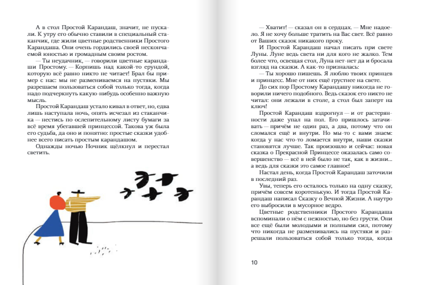 Героев клюевских сказок нетрудно найти в повседневной жизни, стоит лишь пройтись по квартире или выглянуть в окно: вот на скамейке сидит Бумажная Птичка, обиженная на ураган, мимо пролетает Рассеянный Воздушный Поцелуй, на кухне тяжело вздыхает Лавровый Лист, полностью разочаровавшийся в жизни. А рядом стоит мудрая Кофейная Мельничка, которая просит нас не торопиться и почаще вспоминать о чудесном слове — «вре-мя-пре-про-во-жде-ние»! Ну а что же Простой Карандаш? Он всё это запишет, и однажды листочки с историями разлетятся по всему свету и, может быть, попадут вам в руки.Евгений Клюев — один из самых ярких писателей современной русской литературы, поэт, филолог, лауреат престижных литературных премий, кавалер Ордена Почётного Додо, признанный эксперт в литературе абсурда, автор нового — и самого близкого к оригинальному тексту Льюиса Кэрролла — перевода «Алисы в Стране чудес». Его сказки входят в школьную программу, их играют на большой и малой сцене в разных странах, на разных языках.В новый сборник Евгения Клюева вошла 31 абсурдная, весёлая и мудрая сказка с иллюстрациями Марины Павликовской.