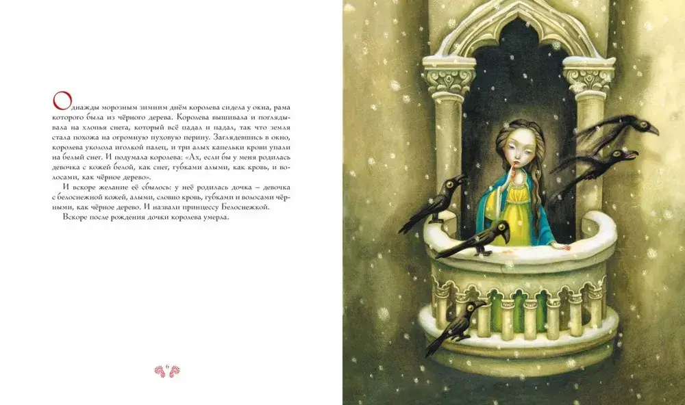 Белоснежка – юная красавица с бледной, как снег, кожей, тёмными, как ночь, волосами и алыми, как кровь, губами и румянцем, обречена на смерть из-за ревности мачехи-колдуньи…