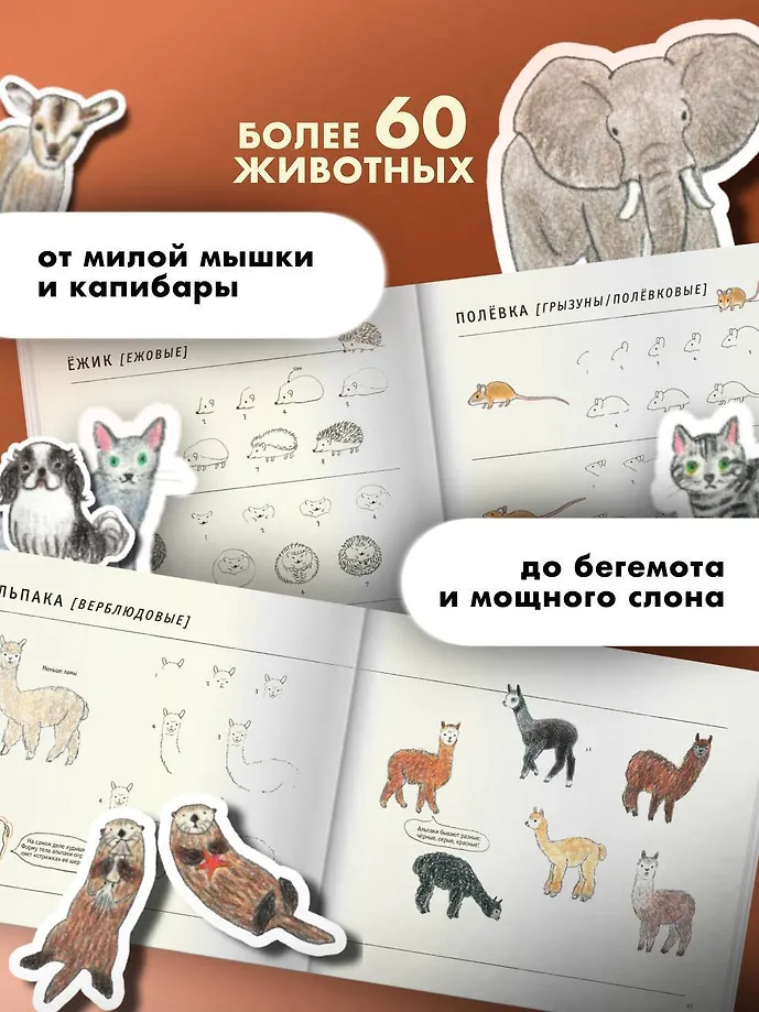 Эта книга содержит простые пошаговые уроки рисования самых распространённых и самых милых животных на свете! Благодаря советам художницы Акикусы Ай вы научитесь рисовать очаровательного бегемота, милого кролика и величественного тигра, изучите, как найти форму предмета, особенности строения телзверей, и узнаете больше об их следах!Этот восхитительный самоучитель не только обучит вас рисованию, но и познакомит с удивительным разнообразием животного мира, расскажет об уникальных чертах зверей и их семействах.