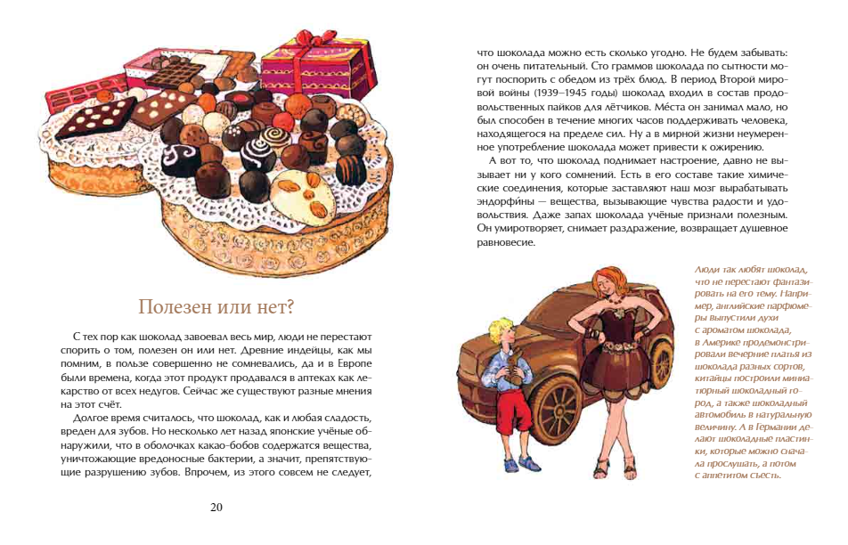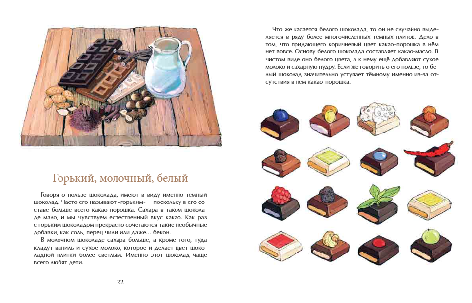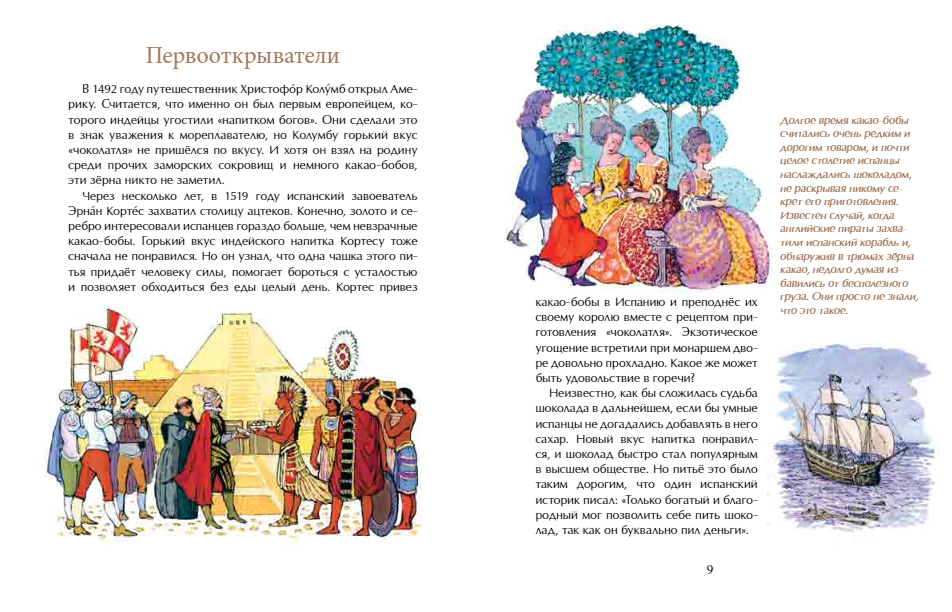Участники этой истории – и коренные жители Южной Америки, и испанские мореплаватели, которые впервые привезли какао-бобы в Европу, и представители испанской, французской и русской знати. Книга рассказывает о том, как на протяжении веков в разных странах люди открывали для себя рецепты приготовления любимого лакомства.