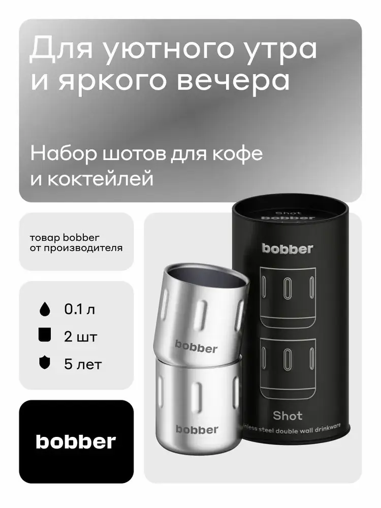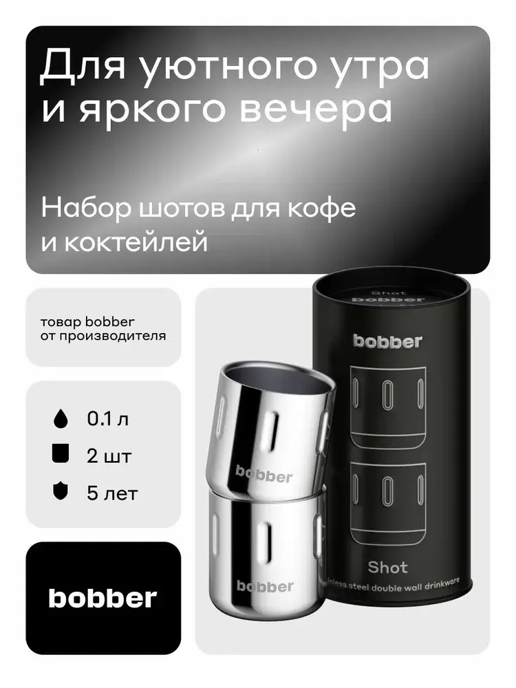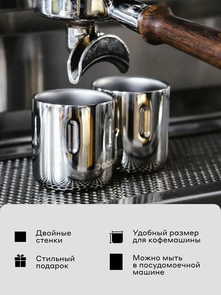 Универсальная питьевая посуда. Набор шотов для эспрессо и крепких напитков. Объем 100 мл. Двустенный шот выполнени из 18/8 нержавеющей пищевой стали.