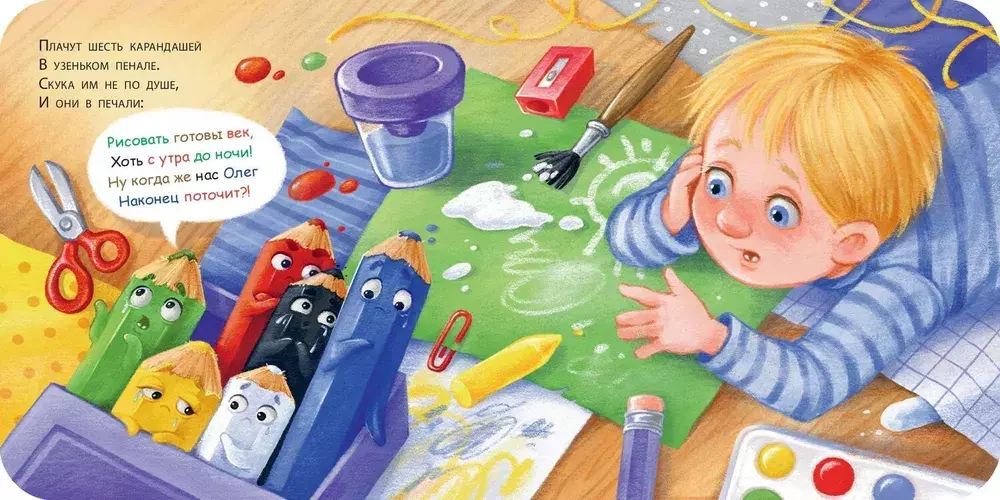 Загрустили цветные карандаши в своем пенале: их давно никто не точил, давно ими никто не рисовал… Мечтают карандаши о том, что они могли бы нарисовать.
