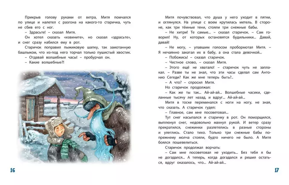 Утром 31 декабря Митя проснулся с ощущением грядущего праздника. Но у Старого года, как выяснилось, были свои планы: злобный старик не желал сдавать позиций. При помощи трёх снежных баб он решил остановить время. Так в небольшом посёлке и началась сказка среди бела дня…