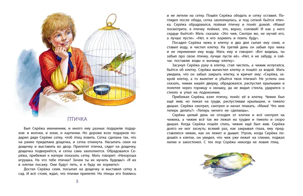 Лев Николаевич Толстой (1828 — 1910) — великий русский писатель, известный во всём мире. Он заботился о детской грамотности, поэтому написал четыре книги для чтения, которые включали не только истории, басни, были и загадки, но и рекомендации педагогам. Книги были объединены общим названием "Азбука". Произведения из этих книг вошли в наш сборник: "Филипок", "Косточка", "Прыжок", "Лев и собачка", "Пожар", "Три медведя" и другие. Многие произведения входят в школьную программу.