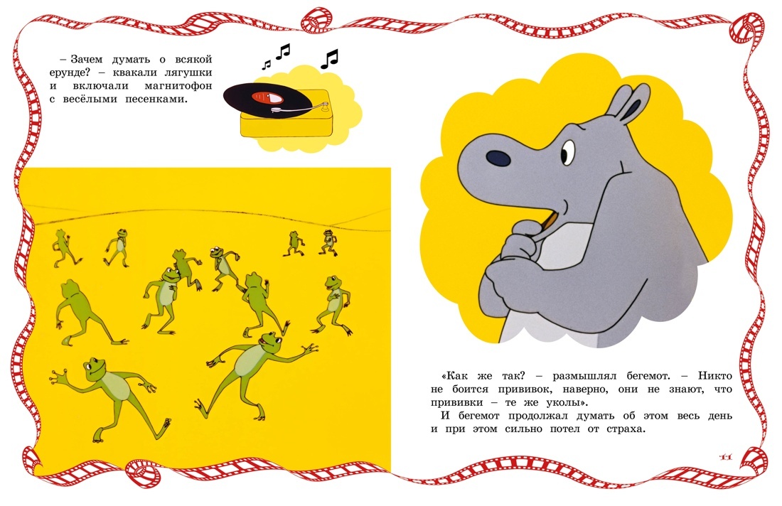 «Жил-был бегемот, который ужасно боялся прививок…» Так начинается эта весёлая и добрая сказка. Кто бы мог подумать, что большой и сильный зверь испугается маленького укола! Вместе с трусишкой-бегемотом малыши победят страх перед прививками и узнают, что прививки делать ни капельки не больно, а всего лишь немножко щекотно.