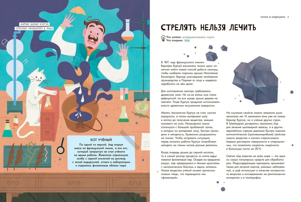 Откройте для себя удивительный мир науки и изобретений с книгой, рассказывающей о самых неожиданных открытиях! Микроволновка, удобная обувь на липучках, пластилин для творчества, супер клей для ремонта – кто бы мог подумать, что все эти незаменимые вещи появились благодаря случайности и ошибкам! Эта книга – вдохновляющий рассказ о том, как важно не бояться экспериментировать и извлекать уроки из неудач. Яркие иллюстрации и увлекательное повествование делают ее прекрасным подарком для детей и взрослых, интересующихся наукой и историей изобретений. Погрузитесь в мир научных экспериментов, узнайте о гениальных изобретателях, совершивших открытия вопреки всему. Возможно, эта книга вдохновит и вас на собственные научные исследования и неожиданные открытия! Развивайте креативность и научное мышление! Посмотрите на обычные вещи, которые нас окружают по-новому! Книга выполнена в твёрдом переплёте, что делает её долговечной и удобной в использовании. Великолепное качество печати, белая бумага, иллюстрации на каждой