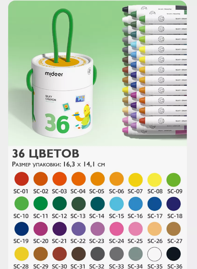 Смываемые восковые фломастеры в ведерке 36 цветов