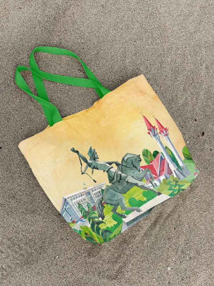 При оформлении сумки использовались иллюстрации всемирно известного художника Valerius. Его работы хранятся в 12 галереях по всему свету, в том числе в коллекциях короля Непала, принцессы Нидерландов Беатрикс, Санта-Клауса и норвежской группы А-НА. Поклонники ДДТ хорошо знают творения художника по обложкам альбомов «Оттепель», «Актриса Весна» и клипу «Дождь».