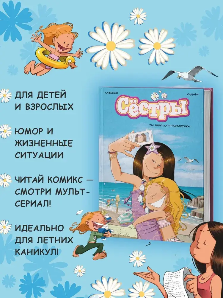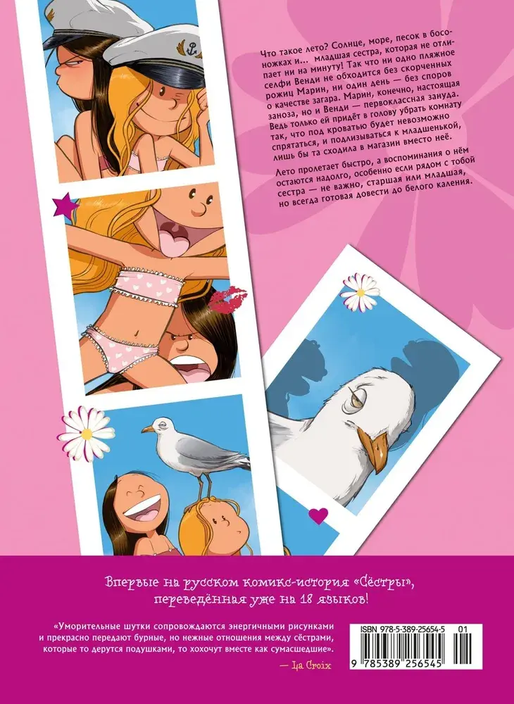 Что такое лето? Солнце, море, песок в босоножках и... младшая сестра, которая не отлипает ни на минуту! Так что ни одно пляжное селфи Венди не обходится без скорченных рожиц Марин, ни один день — без споров о качестве загара. Марин, конечно, настоящая заноза, но и Венди — первоклассная зануда. Ведь только ей придёт в голову убрать комнату так, что под кроватью будет невозможно спрятаться, и подлизываться к младшенькой, лишь бы та сходила в магазин вместо неё. Лето пролетает быстро, а воспоминания о нём остаются надолго, особенно если рядом с тобой сестра — не важно, старшая или младшая, но всегда готовая довести до белого каления.
