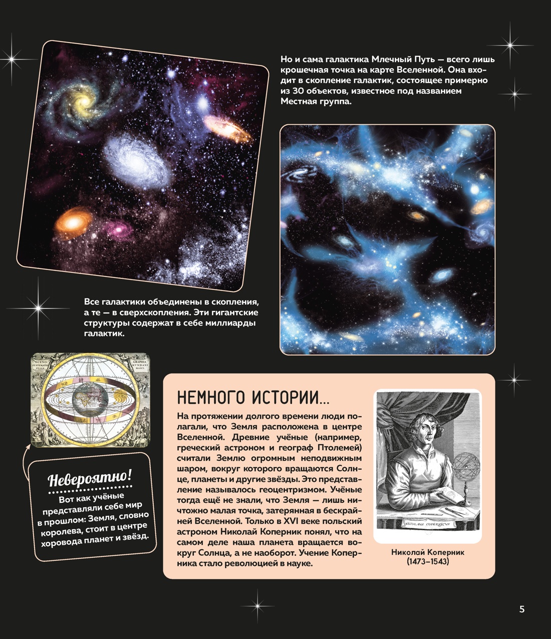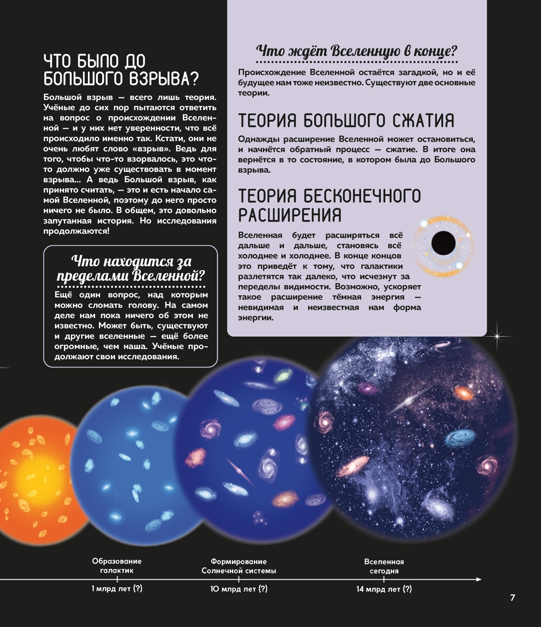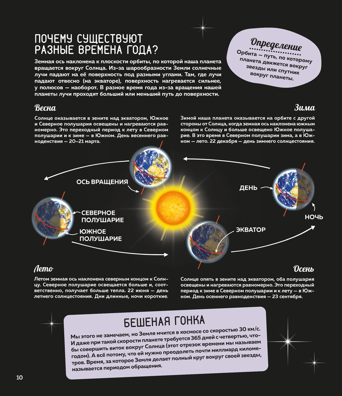 Как зовут первую женщину-космонавта? Почему поверхность Луны покрыта кратерами? Какая планета Солнечной системы самая маленькая?Хотелось бы тебе узнать множество удивительных фактов о кометах, метеоритах, астероидах и планетах Солнечной системы и открыть все тайны нашей Вселенной? Благодаря этой богато иллюстрированной энциклопедии ты сможешь выяснить, когда на Земле зародилась жизнь, почему существуют разные времена года, что такое орбита, где находится пояс астероидов, а также рассмотреть вблизи Солнце, Луну и карту звёздного неба. А ещё ты прочитаешь про подвиг наших великих соотечественников, навсегда изменивших историю космонавтики, и узнаешь, какие исследования проводят специалисты на МКС.В конце книги тебя ждёт увлекательная викторина для проверки знаний.