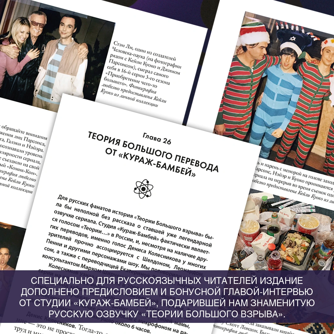 В жизни двух физиков многое меняется, когда 24 сентября 2007 года в освободившуюся квартиру на их этаже въезжает новая соседка — очаровательная официантка из Небраски. Так начался сериал, который стал уникальным для своего времени, а для нашего — культовым. И теперь у вас есть возможность узнать все о внутренней кухне «Теории Большого взрыва», ведь эта книга — результат 120 часов интервью, проведенных за 9 месяцев, тысяч страниц расшифровок и 114 страниц заметок после пересмотра 280 серий. Автор проведет вас за кулисы любимого шоу, где вы услышите историю создания сериала из первых уст.Специально для всех фанатов сериала в России издание было дополнено предисловием и бонусной главой-интервью от студии «Кураж-Бамбей», подарившей нам знаменитый русский голос «Теории Большого взрыва»!