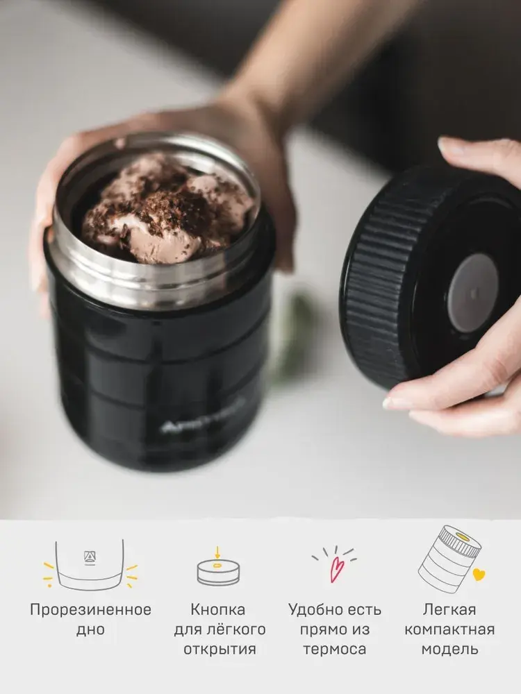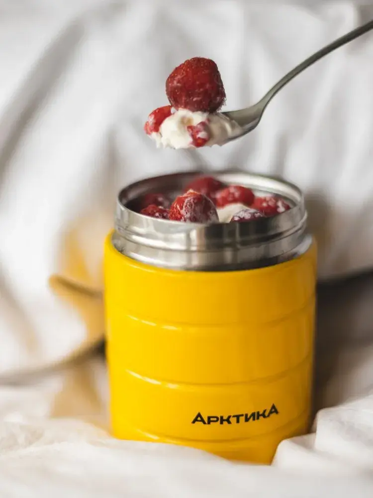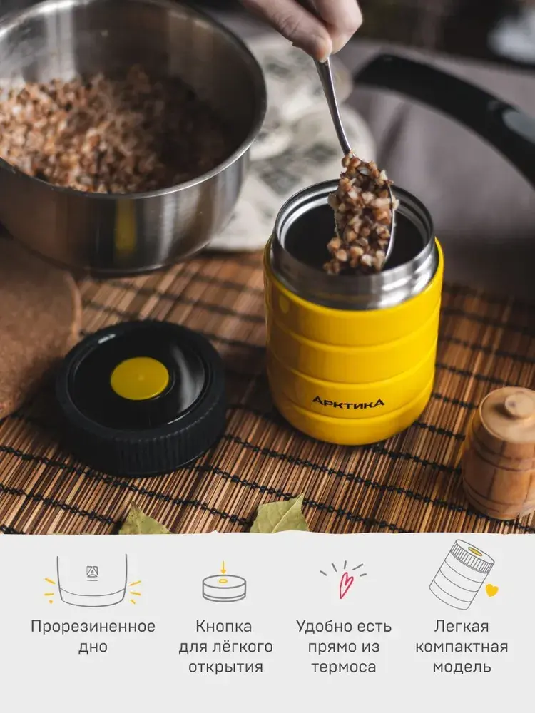 308-1300 термос с контейнерами позволит одновременно перевозить 3 блюда. Внутри термоса есть два контейнера на 250 и 200 мл, можно использовать как термос для супа / термос для каши и других вторых блюд, а в крышке – дополнительная емкость объемом 250 мл для продуктов, не требующих сохранения тепла, например, для салата. Обращаем внимание, что термос можно использовать только вместе с контейнерами! Отдельно контейнеры держать тепло не будут. Благодаря диаметру горлу удобно есть прямо из него, а после - легко мыть. 308-1300 термос с кнопкой от присасывания поможет открыть его без лишних усилий. Накладки на углах контейнеров предохраняют колбу от царапин, а прорезиненная крышка помогает их легко открыть. Арктика термос для еды с контейнерами выполнен из долговечной нержавеющей стали и безопасного пищевого пластика, которые не влияют на вкусовые качества еды. Подходит для детей и детского питания Гарантия на вакуум – 5 лет.