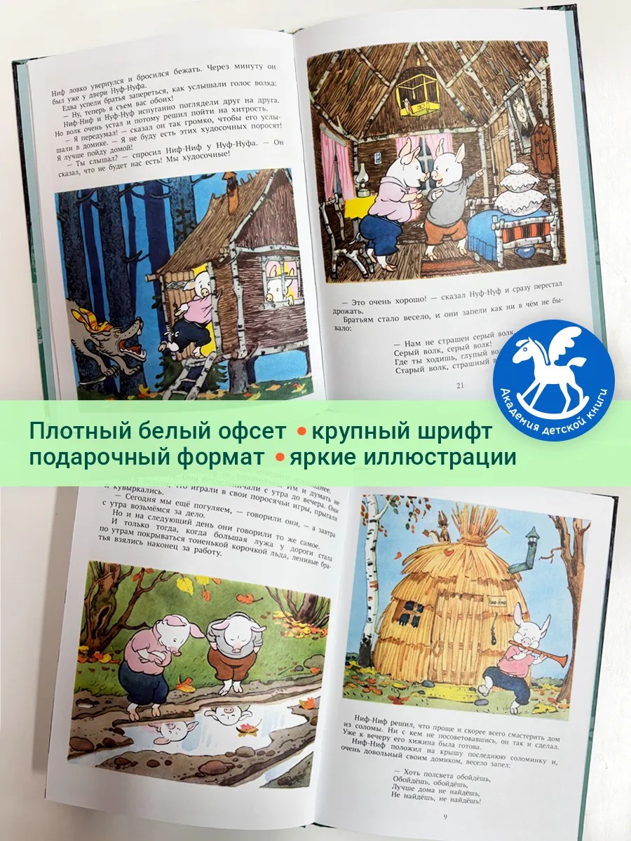 "Одна из самых популярных сказок для детей в мире — «Три поросёнка». С ХIХ века известна английская народная сказка про трёх поросят. Взяв за основу народную сказку, классик отечественно детской литературы Сергей Владимирович Михалков в 30-е годы ХХ века пересказал её. У каждого поросёнка появилось не только своё собственное имя: Ниф-Ниф, Нуф-Нуф, Наф-Наф, но и свой собственный характер. Персонажи сказки стали петь весёлые песенки. Поросятам пришлось пройти через все испытания и на своём примере показать маленькому читателю, как правильно взрослеть, как стать сильным и счастливым «поросёнком»."