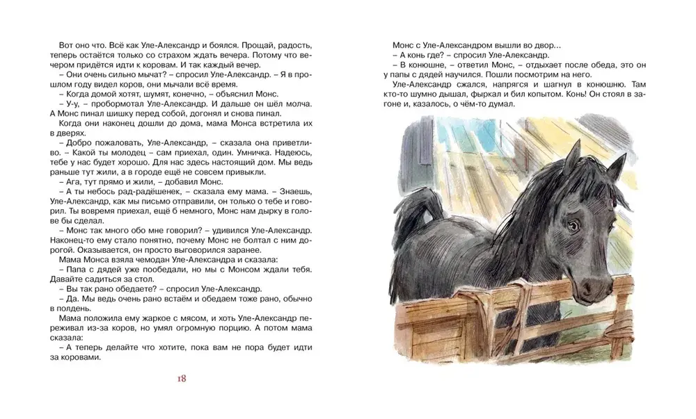 Вы уже успели подружиться с Уле-Александром, а он тем временем закончил первый класс. Наступили летние каникулы, и Уле-Александр отправился на хутор, в гости к Монсу. Сколько там всего было! Уле-Александр совершенно самостоятельно путешествовал на автобусе, пас коров, узнал, что такое кукушкино дерево, побывал на деревенском празднике.