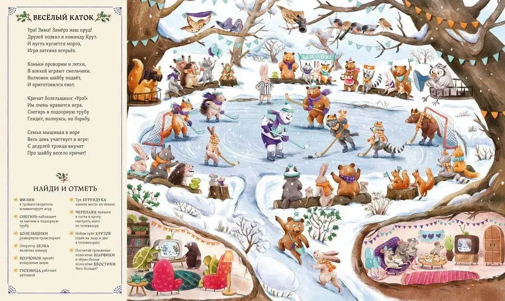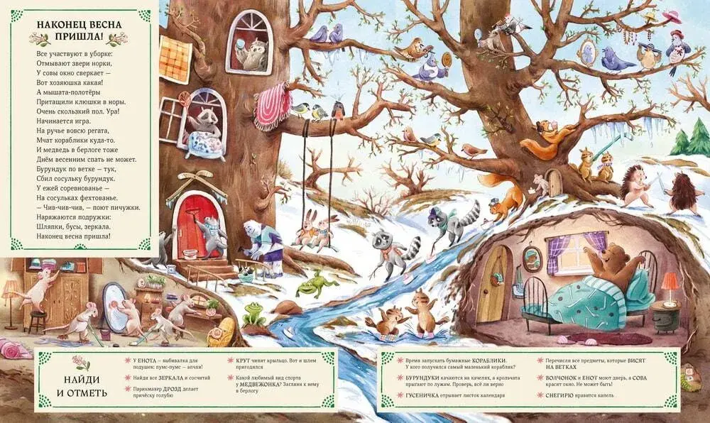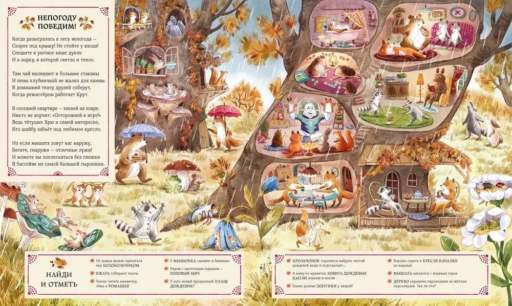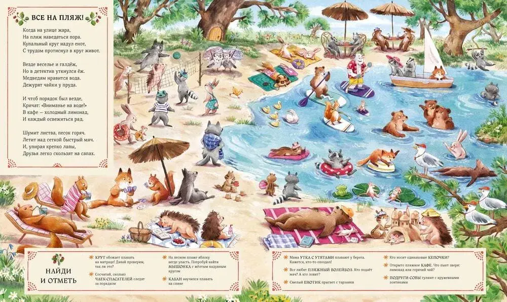 Читайте стихи, рассматривайте детальные иллюстрации и тренируйте внимательность, выполняя задания на каждом развороте.
